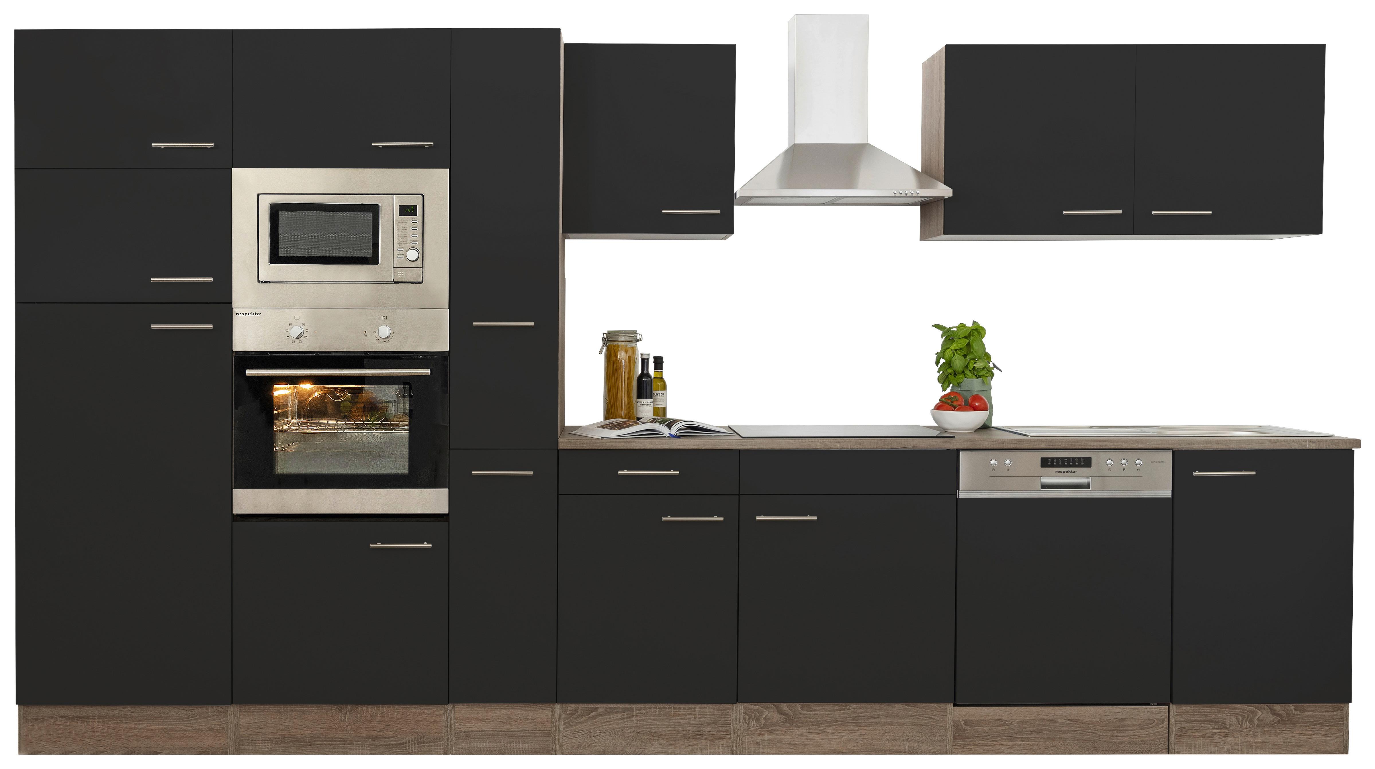 • Respekta Malia Küchenzeile 280cm Schwarz - Komplettküche Mit Soft-Close & Einbauspüle