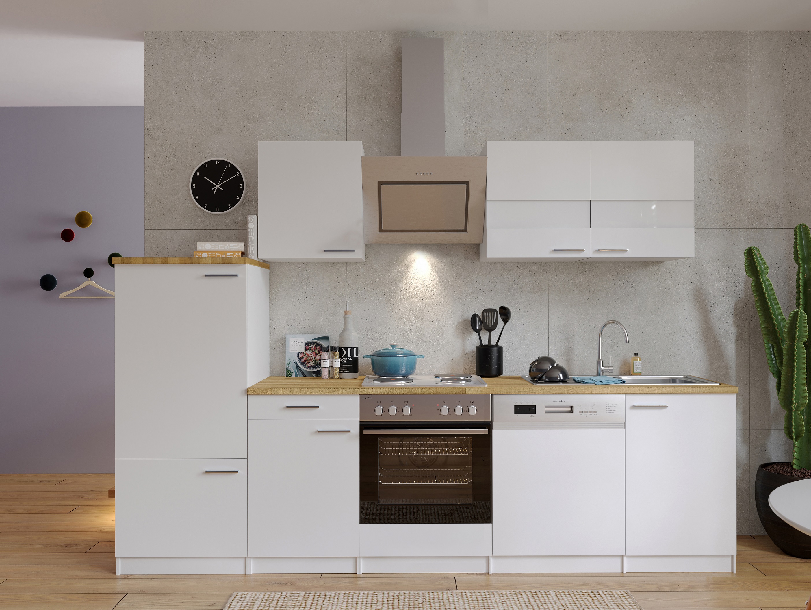 Traumküche gesucht? Die Respekta Malia in Schwarz mit 280cm Länge hat alles, was du brauchst! Mit 28mm dicker Arbeitsplatte, Einbauspüle aus Edelstahl und Soft-Close Funktion bei allen Schubladen und Türen. Wird zerlegt geliefert und ist wechselseitig aufbaubar - super flexibel! Die Montage ist dank detaillierter Anleitung einfach und alles Material ist dabei. Made in Germany mit hohen Qualitätsstandards. Wird palettiert frei Bordsteinkante geliefert mit telefonischer Ankündigung. Bau dir deine Traumküche selbst zusammen und spar dabei! Perfekt für alle, die eine hochwertige Küche zum fairen Preis suchen.