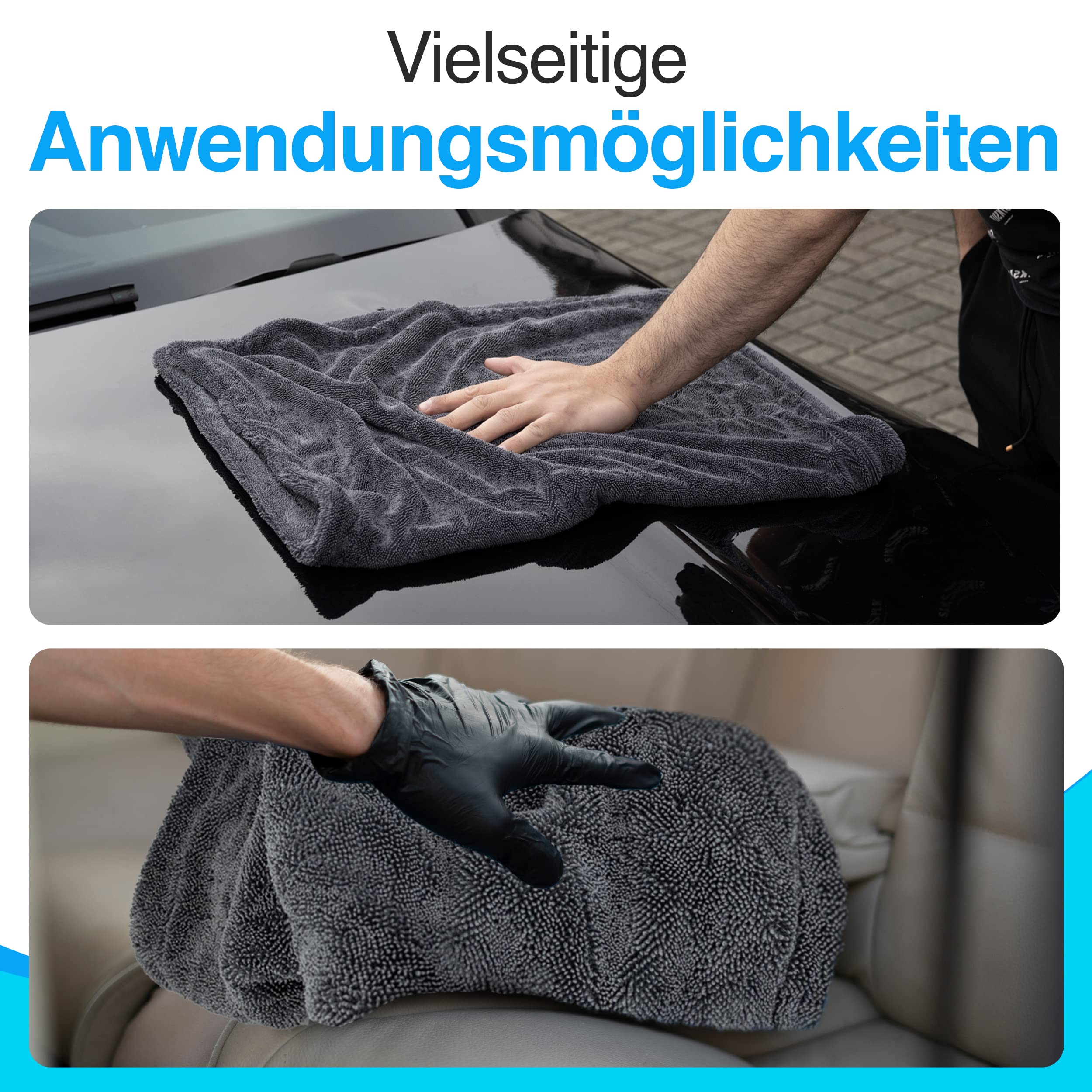 • 2 Stück Mikrofaser Handtücher Auto 1200 GSM - 90x60cm & 40x40cm Lackschonend