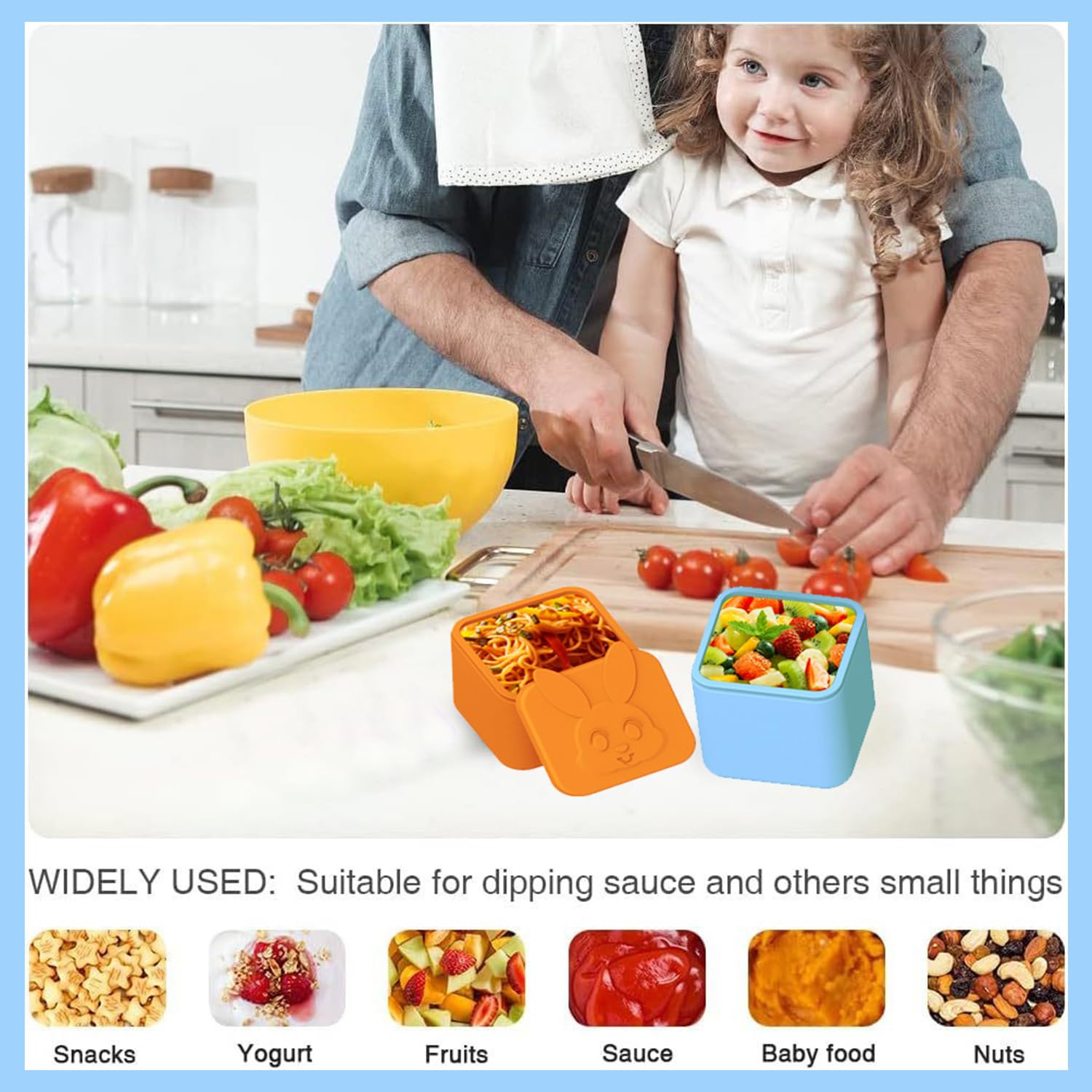Aus 100% BPA-freiem Silikon sind die Boxen absolut lebensmittelecht und unbedenklich für Kinder. Die auslaufsicheren Deckel sind so designed, dass sogar kleine Kinderhände sie leicht öffnen und schließen können - aber nichts ausläuft!