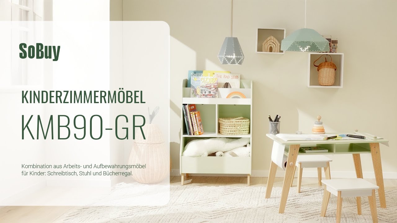 Oh wie praktisch! Dieses SoBuy Kinderbücherregal bringt Ordnung ins Kinderzimmer! 90cm hoch - perfekt für Kleinkinder ab 3 Jahren, die selbstständig ihre Bücher und Spielsachen holen wollen. Mit 3 Fächern und 4 Ablagen - genug Platz für alles! Aus MDF in E1-Qualität (<0,1 ppm Formaldehyd) - absolut unbedenklich für Kinder. Abgerundete Ecken und Kippschutz - damit nichts passieren kann! Belastbar bis 20kg (Bücherfächer 2kg/Fach, Zwischenböden 4kg). Maße: 63x90x30cm - platzsparend für jede Ecke. In natur-grün - passt in jedes Zimmer. Einfach aufbauen, an die Wand montieren und dein Kind kann selbst Ordnung halten! Fördert die Selbstständigkeit und macht das Aufräumen zum Kinderspiel!