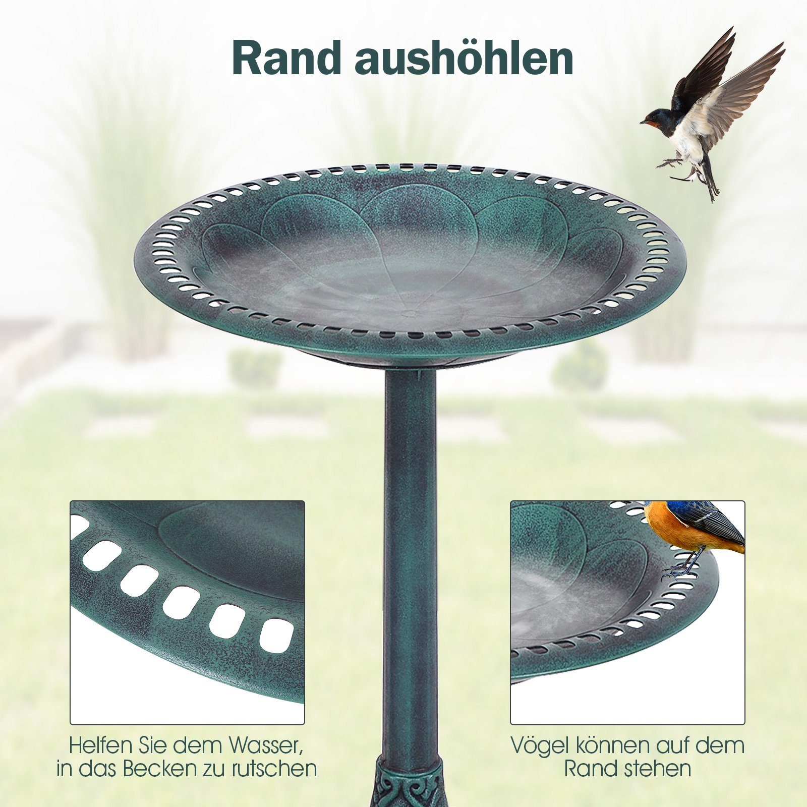 Verwandle deinen Garten in ein Vogelparadies! Diese wunderschöne 3-in-1 Vogeltränke in eleganter Bronze-Optik ist viel mehr als nur eine Tränke. Mit integrierter Solarleuchte, die nachts bis zu 8 Stunden sanftes Licht spendet und Vögel anlockt. Oben befindet sich ein blumenförmiger Futterteller, in der Mitte eine Lotusblatt-Schale als Badeplatz und unten ein Blumentopf mit 6 Abflusslöchern. Aus robustem, rostfreiem Metall und wetterfestem PP-Material gefertigt. Mit 79 cm Höhe und 31x31 cm Grundfläche ist sie ein echter Blickfang. Perfekt für Garten, Terrasse oder Hof. Einfach die Solarzelle montieren, Blumen einpflanzen oder mit Steinen beschweren - und schon erlebst du munteres Vogel-Treiben in deinem Garten!