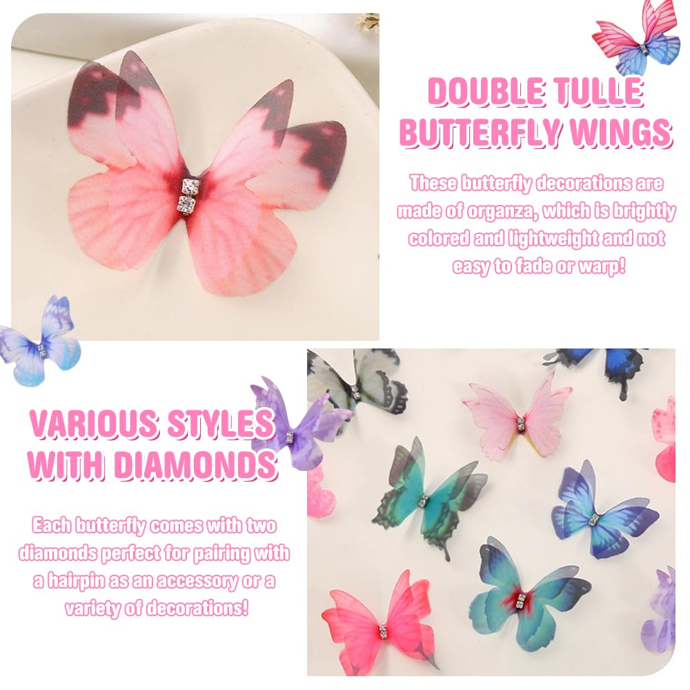 Bastelfans, diese 60 Schmetterlinge aus Organza sind einfach zauberhaft! Aus hochwertigem Polyester in verschiedenen Farben - total lebendig und langlebig. Das coole: Du kannst die Flügel bewegen und in verschiedene Winkel bringen - sieht aus als würden sie gleich losfliegen! Perfekt für Wanddekoration, Kleidung, Haarspangen oder einfach für DIY-Projekte. Ob Hochzeit, Geburtstag oder Party - damit machst du jede Deko besonders. Einfach mit Kleber befestigen oder an Nähen - deiner Kreativität sind keine Grenzen gesetzt. Die kleinen Details sind richtig liebevoll gemacht. Stell dir vor: Eine ganze Wand voller schwebender Schmetterlinge - einfach traumhaft! Auch super fürs Kinderzimmer oder als Geschenkverpackung. Einfach ausprobieren und die Magie der Schmetterlinge genießen!