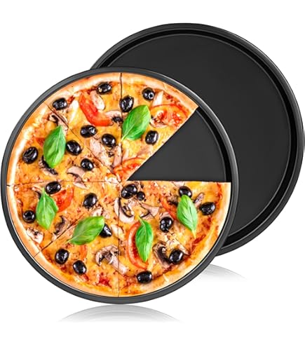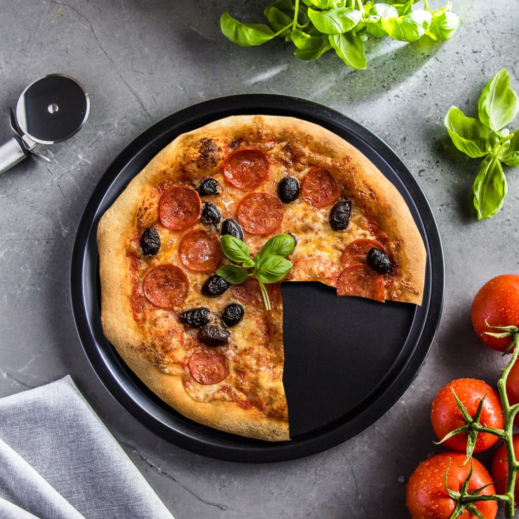 Pizza-Liebhaber, dieses Set ist ein Traum! 4 schwarze Pizzableche aus Karbonstahl mit super Antihaft-Beschichtung. Jedes Blech misst 8 Zoll (ca. 20cm) - perfekt für persönliche Pizzen. Hitzebeständig bis 230°C, also ideal für Ofen und Grill. Im Set enthalten: Kurzer Kuchenheber und Silikonpinsel (9g, orange). Die Antihaft-Beschichtung sorgt dafür, dass nichts anklebt und die Reinigung zum Kinderspiel wird. Nicht nur für Pizzen super - auch für Muffins, Quiches, kleine Kuchen und vieles mehr. Perfekt für Familien, Partys oder wenn jeder seine eigene Kreation haben will. Einfach belegen, backen und genießen!