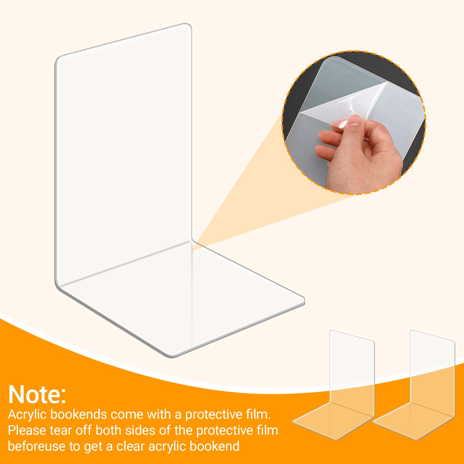 Schluss mit umfallenden Büchern! Diese 8 transparenten Acryl-Buchstützen bringen Ordnung in dein Regal. Jede Stütze ist 12x12x17,5cm groß und 3mm dick - stabil genug für schwere Bücherstapel. Das klare Material ist unauffällig und passt zu jedem Einrichtungsstil. L-förmiges Design mit abgerundeten Ecken, sicher und stylisch. Inklusive Haftnotizen und Indexaufklebern zum Beschriften. Perfekt für Bücher, Zeitschriften, CDs, DVDs oder Dokumente. Ob im Büro, in der Bibliothek oder zu Hause - endlich alles schön geordnet. Die Schutzfolie vor Gebrauch abziehen, dann glänzen sie wie neu. Mach deine Regale zum Hingucker!