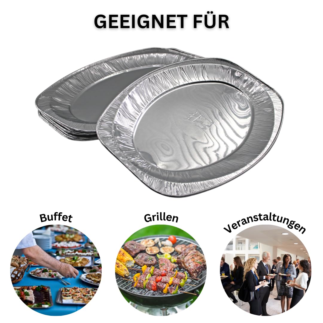 Perfekt für Grillpartys, Buffets und große Runden! Diese 20 ovalen Alu-Servierplatten sind echte Allrounder in jeder Küche. Mit den Maßen 35,2 x 24,7 cm bieten sie reichlich Platz für ganze Fische, saftige Steaks, Grillgemüse oder Meeresfrüchte. Die verstärkte Konstruktion macht die Schalen besonders stabil und auslaufsicher - selbst flüssige Soßen halten problemlos. Aus lebensmittelechter Alufolie gefertigt, sind sie absolut unbedenklich für den direkten Kontakt mit Lebensmitteln. Die große Hitze- und Kältebeständigkeit ermöglicht dir, die Schalen im Backofen zu verwenden, aber auch tiefgekühlte Speisen darin aufzubewahren. Das Beste: Nach Gebrauch einfach entsorgen - kein lästiges Spülen mehr! Ob für die große Familienfeier, den Garten-Grillabend oder den gewerblichen Einsatz in der Großküche - diese Schalen sparen Zeit und Nerven. Die silberne Optik sieht dabei immer edel und appetitlich aus. Mit 20 Stück im Set bist du für jede Gelegenheit bestens ausgestattet. Einfach befüllen, servieren und genießen - die lästige Spülarbeit entfällt komplett. Praktischer geht's kaum!