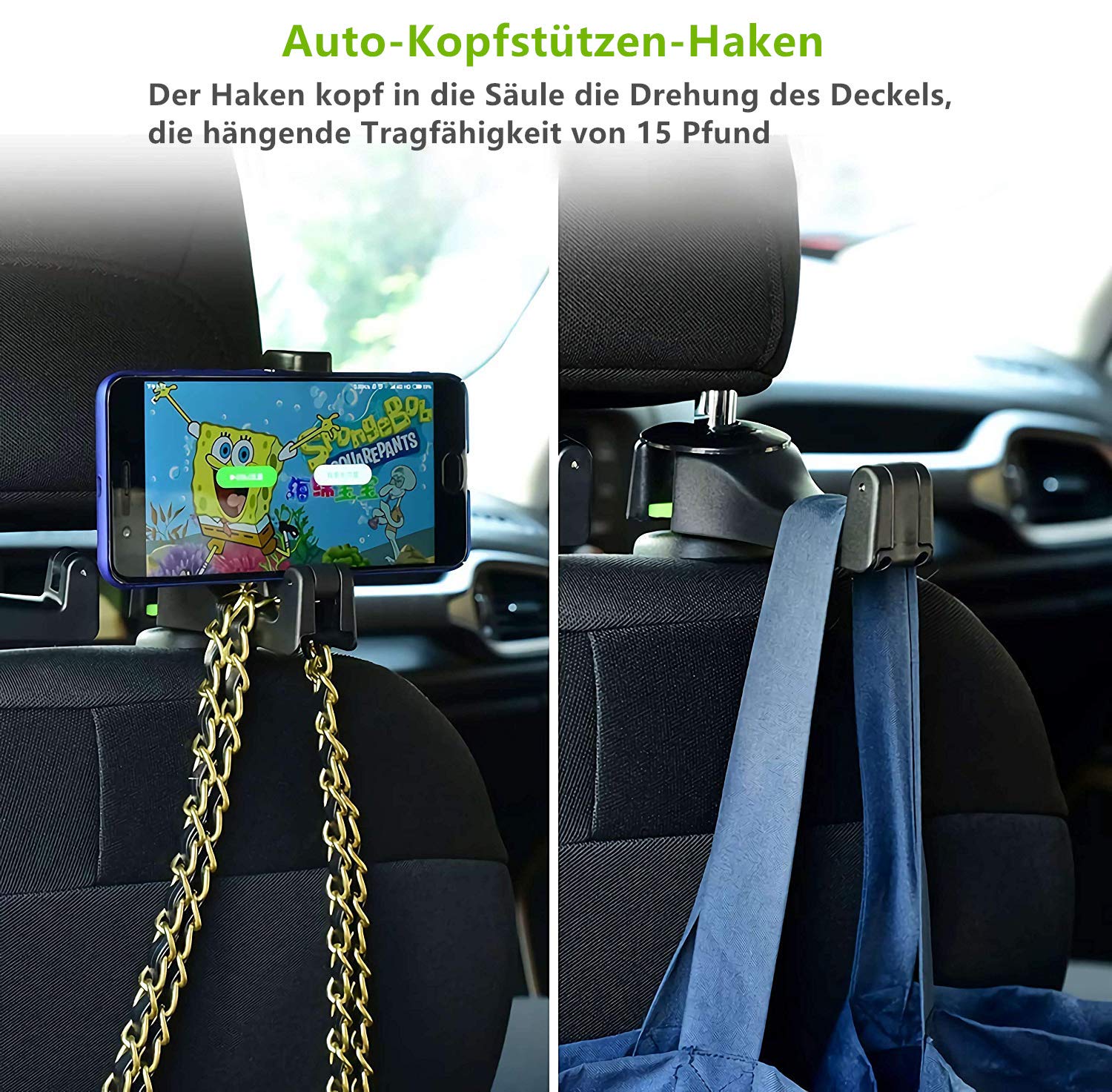 • 2 Stück Auto Kopfstützen-Haken Mit Handyhalter - Multifunktions-Halterung Für Rücksitz