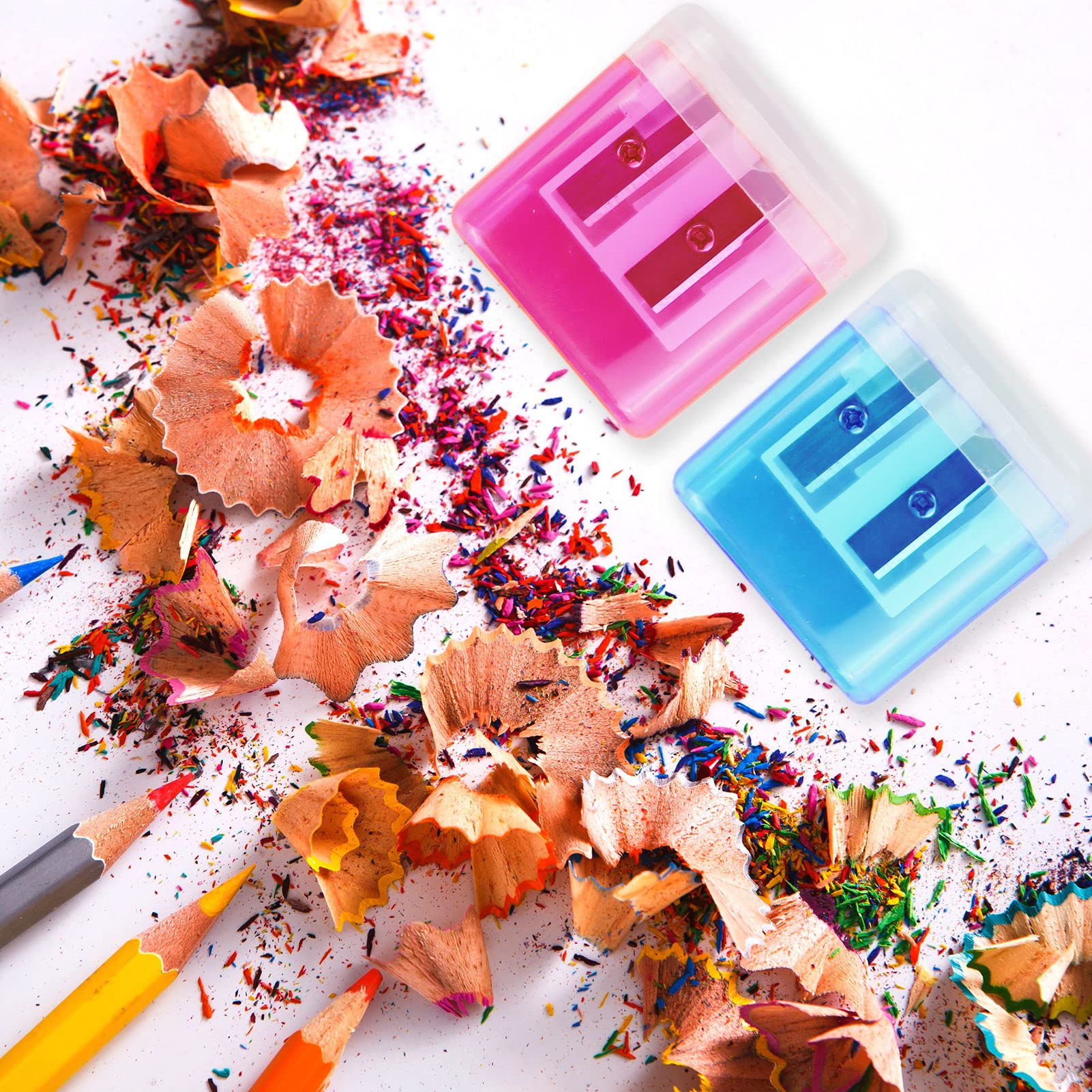 Diese 4 Baustein-Bleistiftspitzer machen sogar das Anspitzen zum Spiel! Jeder Spitzer kommt als Bausatz - du musst ihn erst zusammenstecken, was richtig Spaß macht. Mit den hochwertigen Edelstahlklingen spitzen sie super scharf und präzise, egal ob normale Bleistifte, Buntstifte oder sogar Make-up-Stifte. Der integrierte transparente Spänebehälter ist genial - keine herumfliegenden Späne mehr! Einfach die Seitenklappe öffnen und ausleeren. Aus robustem Kunststoff gefertigt, sind sie absolut sicher für Kinderhände. Besonders praktisch: Sie sind so klein und leicht, dass sie perfekt in Federmäppchen, Taschen oder Kosmetiktaschen passen. Ideal für Schule, Büro, Kunstprojekte oder einfach für zu Hause. Ob Schüler, Lehrer, Künstler oder Erwachsene - mit diesen coolen Spitzern macht das Anspitzen einfach viel mehr Laune. Einfach zusammenbauen, Stift rein und drehen - schon hast du die perfekte Spitze!