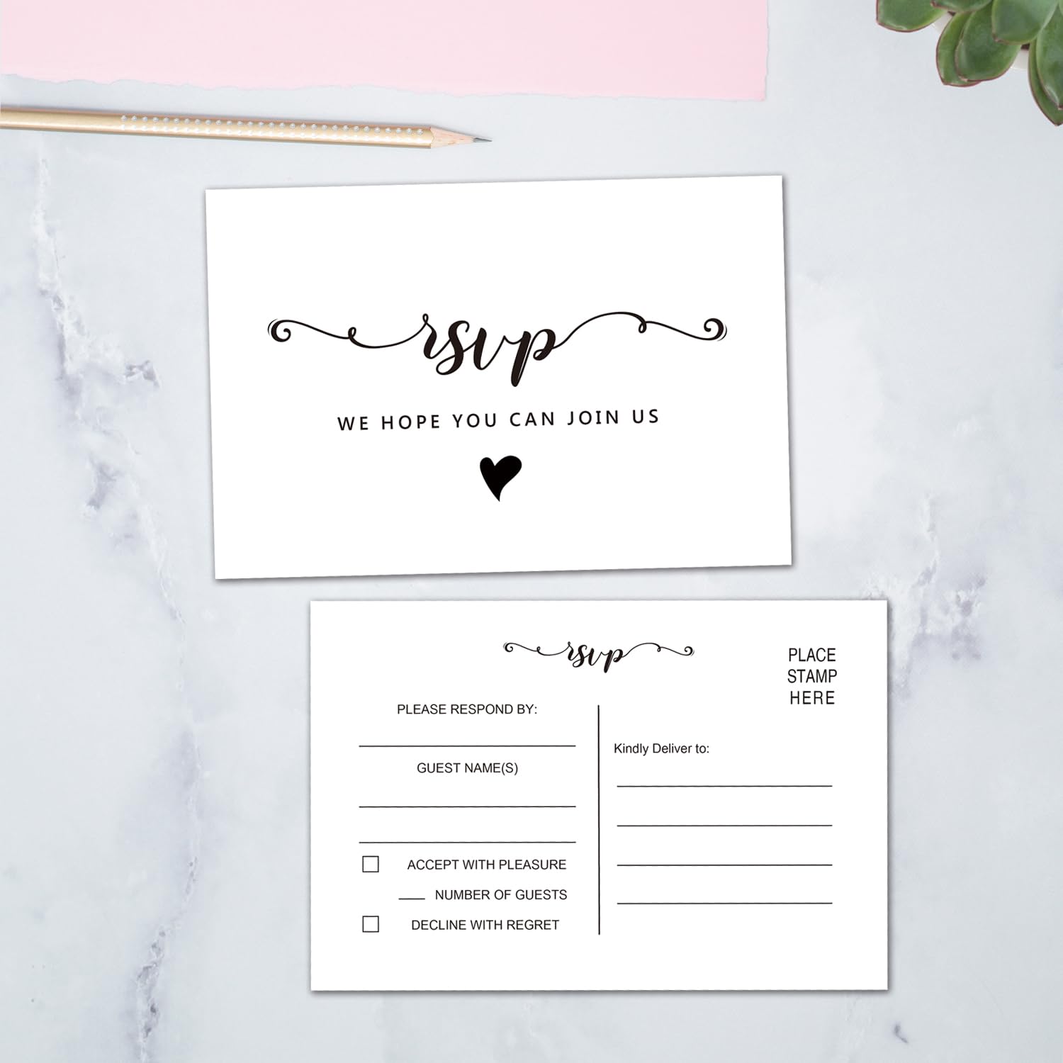 Perfekt organisierte Feiern leicht gemacht! Diese 50 blanko RSVP-Postkarten sind ideal für Hochzeiten, Geburtstage, Empfänge und alle besonderen Anlässe. Aus hochwertigem 14pt Karton (300g/m²) - robust und beschreibbar. Mit 10,2x15,2cm kompakt, aber mit genug Platz für alle wichtigen Infos. Keine Umschläge nötig - Gäste können einfach 'Zusagen' oder 'Absagen' ankreuzen und zurückschicken. Spare Zeit und Geld bei deiner Event-Planung. Ob Verlobung, Babyparty, Jubiläum oder Ruhestandsfeier - diese Karten sind vielseitig einsetzbar. Mach die Gästeverwaltung zum Kinderspiel - bestell das Set und sei bestens vorbereitet für deine nächste Feier!