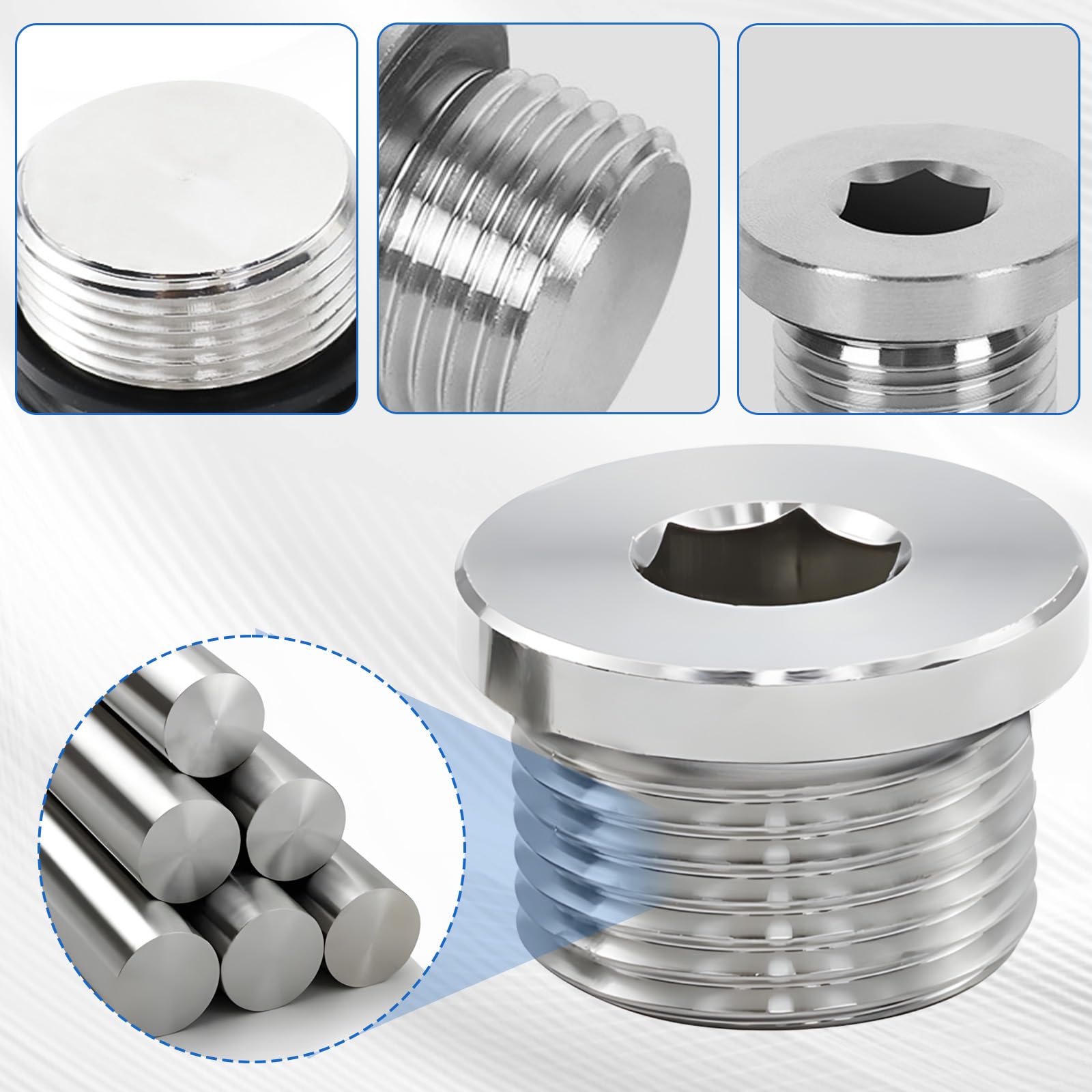 Praktisches 2er-Set Blindstopfen für alle Rohr-Arbeiten! Im 1/2 Zoll Format mit etwa 19mm Länge und 20mm Gewindedurchmesser. Aus hochwertigem Edelstahl - rostfrei und korrosionsbeständig. Mit integrierter Gummidichtung für absolut dichten Verschluss. Das Sechskant-Design ermöglicht einfache Montage mit einem Schlüssel. Perfekt zum Verschließen von Maschinen, Armaturen oder Rohrleitungen. Auch geeignet für Ansaugrohre, Wasserpumpen und Motoröffnungen. Die tief geschnittenen Gewinde sorgen für sicheren Halt. Inklusive 2 zusätzlichen Dichtungsscheiben. Damit hast du immer die passenden Stopfen für Reparaturen und Installationen parat. Ein unverzichtbares Utensil für jede Werkstatt!