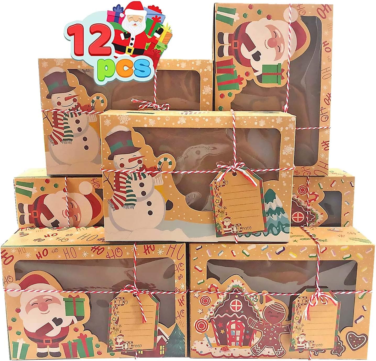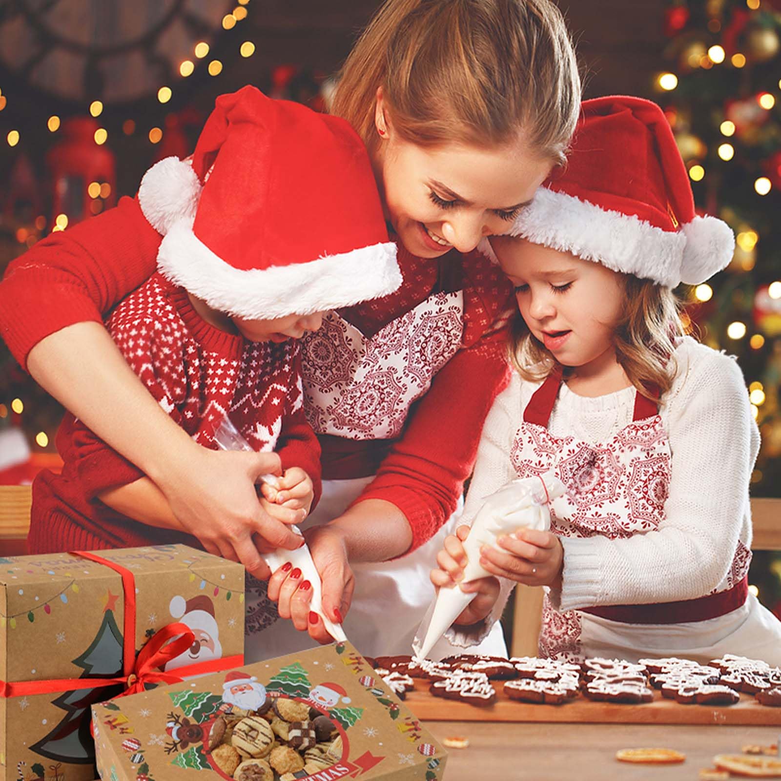 Perfekt für die Weihnachtsbäckerei! Dieses Set mit 12 robusten Keksdosen aus Kraftkarton in Lebensmittelqualität bringt weihnachtliche Stimmung in deine Küche. Jede Box hat ein praktisches Sichtfenster, sodass man die leckeren Plätzchen, Brownies oder Pralinen gleich bewundern kann. Die süßen Weihnachtsmotive mit Rentieren, Weihnachtsmännern und Schneeflocken machen die Dosen zu richtigen Hinguckern. Einfach zusammenklappen - kein Kleber nötig! Inklusive 10m rotem Band und 2 Sticker-Blättern für die persönliche Note. Maße: 22,5x15,5x7 cm. Super für Weihnachtsfeiern, Adventsbasare oder als Geschenkverpackung für liebe Freunde und Kollegen. Ob für den Kuchenverkauf in der Schule, die Firmenfeier oder einfach für zuhause - diese Dosen sind echte Allrounder!