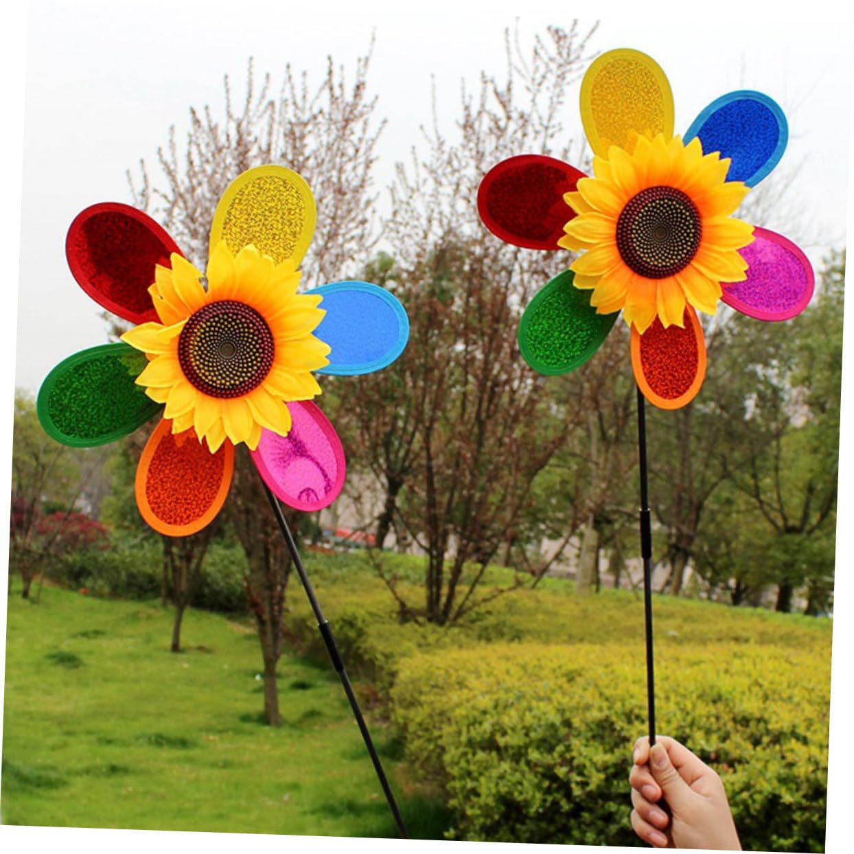 Bring Leben und Farbe in deinen Garten! Diese beiden bunten Windräder von Kisangel verwandeln deinen Balkon, Hof oder Garten in eine fröhliche Oase. Mit 40 cm Höhe und 28 cm Breite sind sie gut sichtbar aber nicht zu aufdringlich. Hergestellt aus wetterbeständigem Kunststoff der auch bei Regen und Sonne nicht so schnell ausbleicht. Die sechseckige Form und die lebhaften Farben ziehen sofort alle Blicke auf sich - ein echter Hingucker! Perfekt für Kinder die Freude an sich drehenden Objekten haben - fördert die Beobachtungsgabe und bringt sie der Natur näher. Einfach in die Erde stecken oder im Blumenkasten befestigen - keine Montage nötig. Die sanft drehenden Flügel im Wind erzeugen eine beruhigende, entspannende Atmosphäre. Ideal für die Gartengestaltung, als Dekoration für Partys oder einfach um triste Ecken aufzuhellen. Auch ein tolles Geschenk für Gartenliebhaber, Familien mit Kindern oder alle die ihrem Zuhause mehr Charme verleihen wollen. Die Windräder sind robust verarbeitet und halten auch stärkerem Wind stand. Einfach aufstellen und zusehen wie sie sich im Wind drehen - stundenlanger Spielspaß für Kinder und dekorative Freude für Erwachsene. Mach deinen Garten noch einladender mit diesen fröhlichen Windrädern die gute Laune verbreiten!