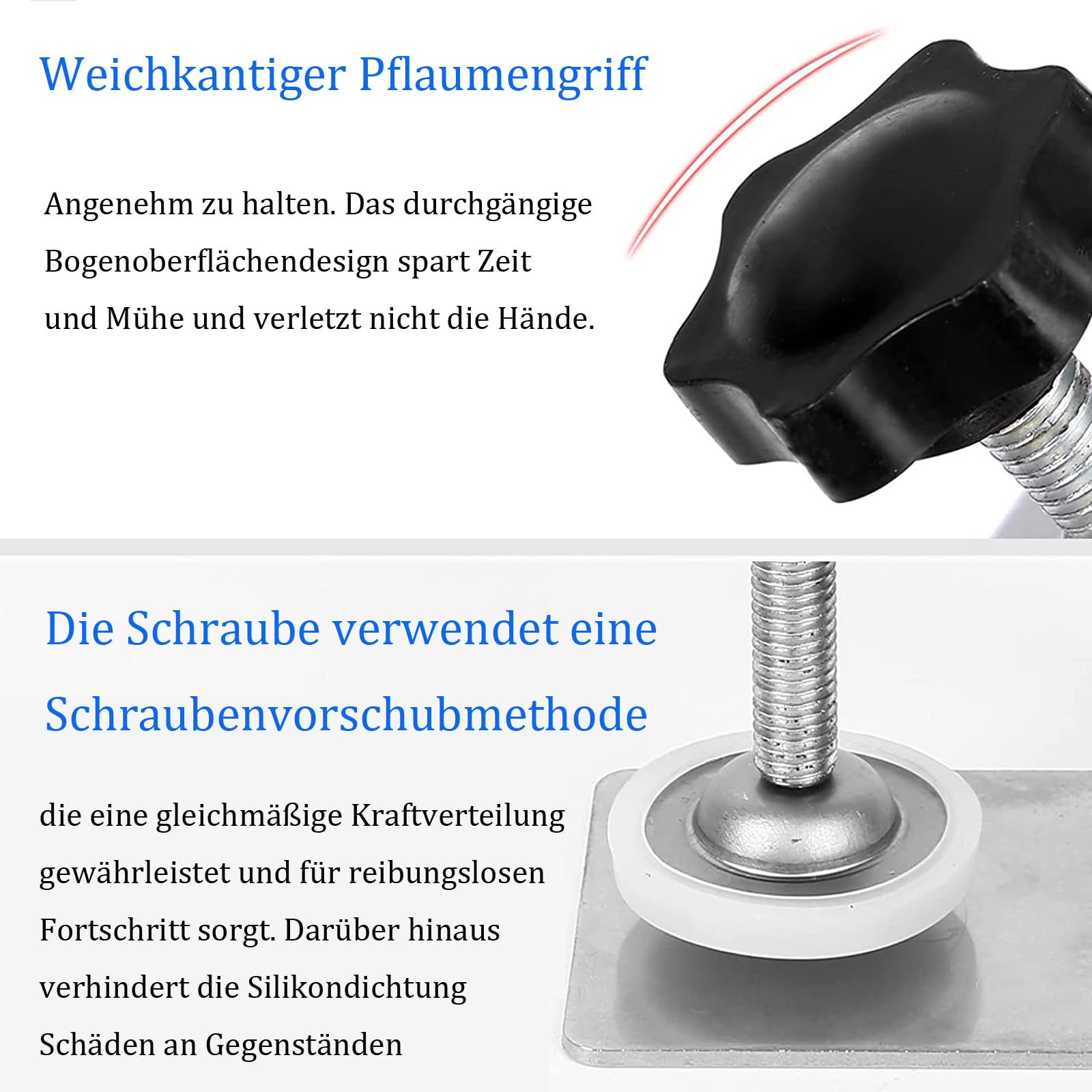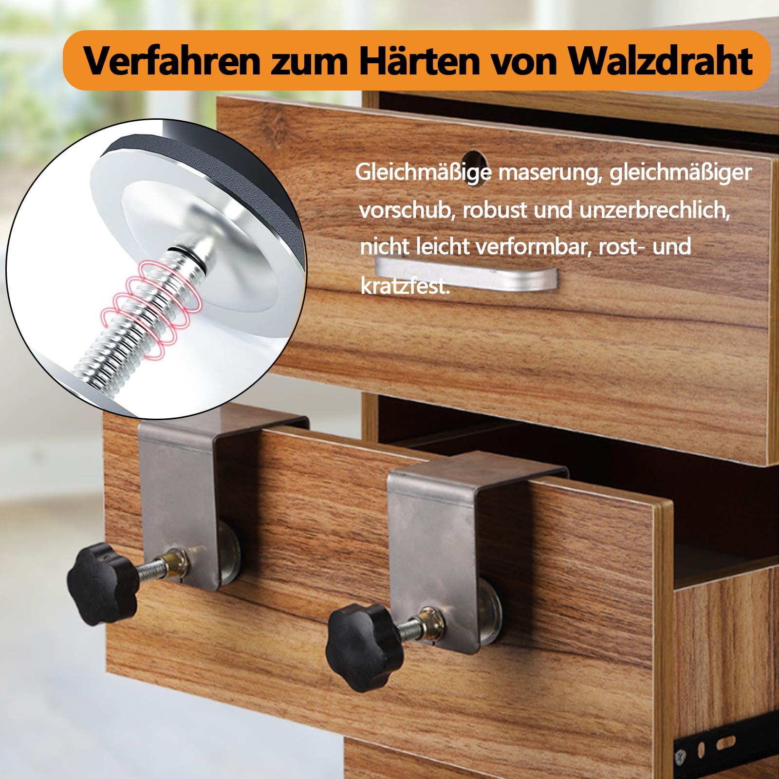Professionelle Hilfe für deine Möbelmontage! Diese 4 C-Klemmen aus robustem Edelstahl 304 sind echte Alleskönner in der Werkstatt. Mit den Maßen 7,3x6x5cm perfekt für Schubladen, Tische, Schränke und andere Holzarbeiten. Das besondere Detail: Im Inneren der Klemmen befinden sich Silikonleder-Polster, die deine Werkstücke vor Kratzern schützen. Der weiche Pflaumenknopf am Griff sorgt für angenehmen Tragekomfort und das gebogene Design macht das Einstellen super einfach. Einfach den Bolzen drehen und schon hält die Klemme bombenfest. Ideal für Tischler, Schweißer und Heimwerker - ob für die professionelle Werkstatt oder den Hobbykeller. Die schwarze Farbe sieht dabei nicht nur gut aus, sondern ist auch praktisch. Mit 4 Stück im Set kannst du mehrere Projekte gleichzeitig bearbeiten oder größere Werkstücke sicher fixieren. Einfach unverzichtbar für jede Werkstatt!