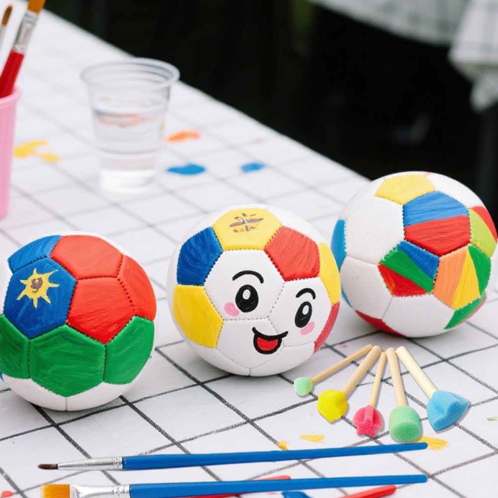 Kleine Fußball-Fans aufgepasst! Mit diesem genialen Fußball-Malset gestalten Kinder ihre eigenen bunten Bälle. 4 Fußbälle (18cm), 24 Farben, 4 Pinsel, 5 Malwerkzeuge, 4 Stickerbögen und eine Pumpe - alles dabei für sofortigen Bastelspaß! Fördert Fantasie, Kreativität und Feinmotorik. Die bemalten Bälle können als bunte Deko im Kinderzimmer hängen oder als leichte Spielbälle verwendet werden. Perfekt für Kindergeburtstage, Regentage oder einfach mal als kreative Abwechslung. Für Jungen und Mädchen von 3-10 Jahren. Ein unvergessliches Geschenk zu Weihnachten, Geburtstag oder als Überraschung für kleine Künstler. Einfach auspacken und loslegen - der Kreativität sind keine Grenzen gesetzt!