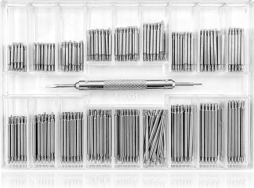 Wechsle deine Uhr-Armbänder im Handumdrehen! Dieses 20-teilige Set mit Federstegen aus Edelstahl macht's möglich. In verschiedenen Größen für 14-24mm Armbänder. Einfach reinstecken, einrasten - fertig! Rostfrei, wasserdicht und bruchfest. Inklusive 2 praktischen Werkzeugen zum Entfernen alter Stege. Perfekt um schnell zwischen Leder-, Metall- oder Nato-Armbändern zu wechseln. Kompatibel mit den meisten Uhren - mechanisch, Quarz oder elektronisch.