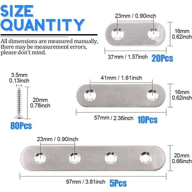 Endlich stabile Möbel! 🔧 Dieses Set mit 25 Edelstahl-Winkelverbindern ist der Retter für wackelige Stühle, Tische und Regale. Aus rostfreiem Edelstahl, also super langlebig. Du kriegst verschiedene Größen: 36mm, 56mm und 86mm - mit 2 oder 4 Löchern für M4 Schrauben. Einfach an den Ecken anbringen und schon ist der Winkel stabilisiert. Perfekt für die Werkstatt oder zu Hause. Inklusive 60 Schrauben - alles da, was du brauchst! 💪
