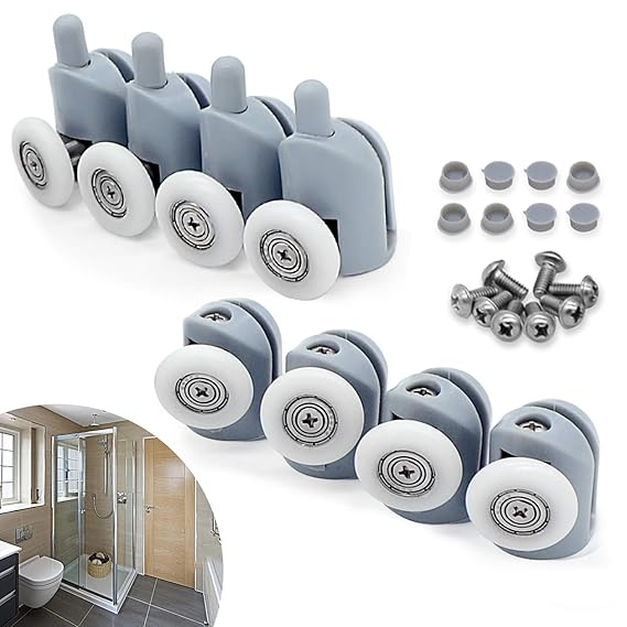 Deine Duschtür klemmt oder läuft nicht mehr smooth? Dieses Set mit 4 Ersatzrollen aus Zinklegierung bringt sie wieder in Schwung! Perfekt für viele Marken mit 8mm Glas-Durchmesser - die Rollen mit 23,5mm Durchmesser und 6mm Breite sind höhenverstellbar und sogar für gebogene oder Viertelkreis-Duschen geeignet. Mit den hochwertigen 304 Edelstahl-Kugeln läuft alles wieder geschmeidig, und die verchromte Oberfläche sieht auch noch gut aus. Einfach die alten Rollen raus, neue rein - schon gleitet deine Duschtür wieder wie neu. Die schwarzen Räder sind der Standard, aber wenn du weiße brauchst, einfach vorher anfragen. Robust, langlebig und praktisch für die nächste Reparatur. Egal ob du handwerklich begabt bist oder nicht - der Wechsel ist wirklich unkompliziert. Gib deiner Dusche wieder den nötigen Schwung - damit das morgendliche Ritual wieder Spaß macht!