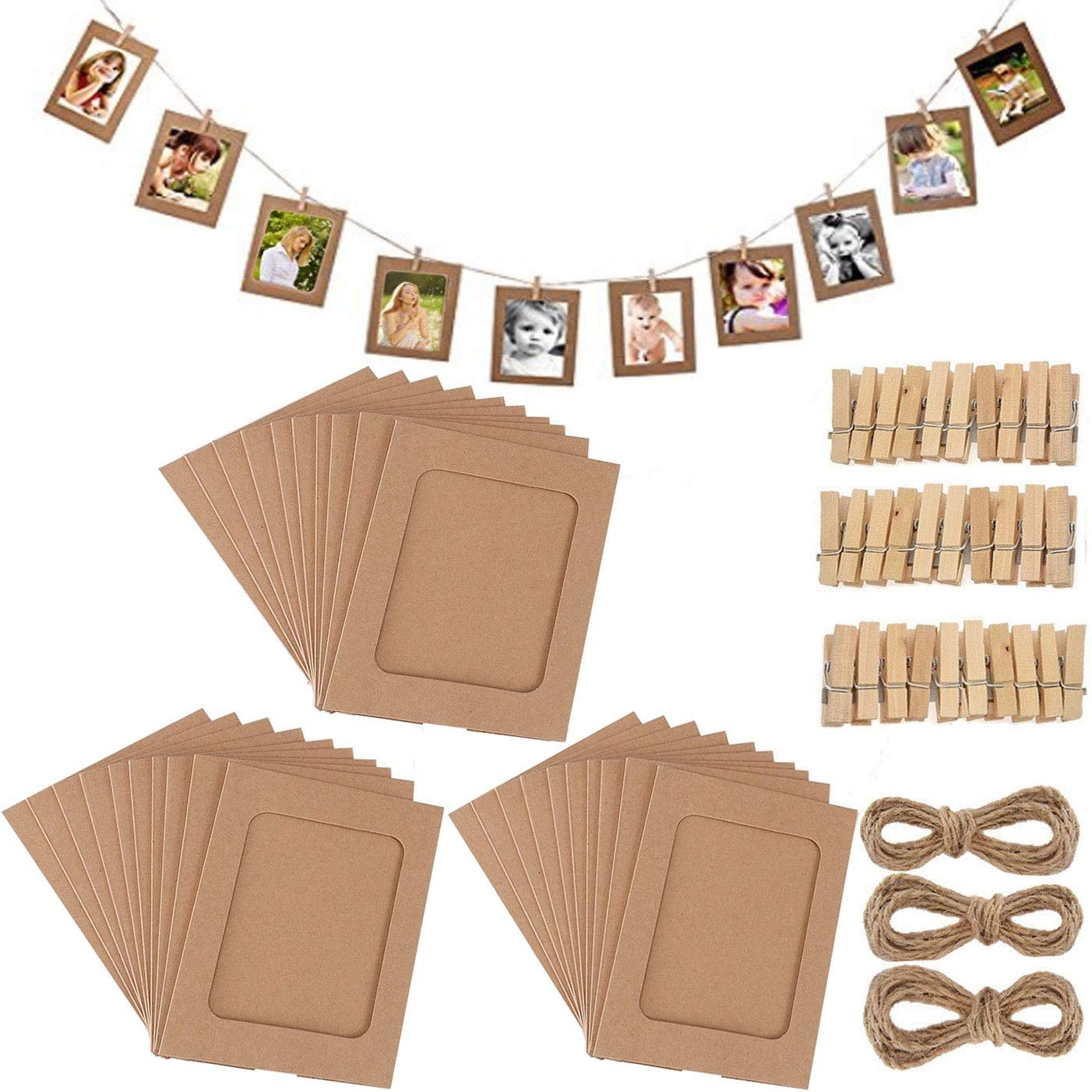 Kreative Fotodeko mal anders! Dieses komplett-Set mit 20 weißen Bilderrahmen aus Kraftpapier (je 15,3x11,3cm) verwandelt deine vier Wände im Handumdrehen in eine gemütliche Fotoecke. Die umweltfreundlichen Rahmen aus natürlichen Pflanzenfasern sind zusammen mit den 20 naturfarbenen Holzklammern und den 2 Hanfseilen perfekt aufeinander abgestimmt. Einfach die Seile spannen, Fotos einkleben und die Rahmen mit den Klammern befestigen - schon ist deine persönliche Fotowand fertig! Ohne Bohren, ohne Kleben, ganz ohne Stress. Das Beste: Du kannst die Fotos jederzeit austauschen und die Girlande immer wieder neu gestalten. Perfekt für Hochzeiten, Geburtstage, Jahrestage oder einfach um Erinnerungen festzuhalten. Ob im Wohnzimmer, Schlafzimmer oder Büro - diese DIY-Fotogirlande sorgt überall für eine warme Atmosphäre. Lass deiner Kreativität freien Lauf und gestalte mit deinen Liebsten gemeinsam einzigartige Erinnerungen!