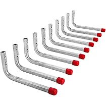 Praktische Haken für Garage und Werkstatt! 6 Stück, je 350mm lang, aus verzinktem Metall. L-Form mit Befestigungslöchern - einfach an die Wand schrauben. Perfekt für Werkzeuge, Gartengeräte, Fahrräder oder was du sonst so aufhängen willst. Robust und langlebig, rostgeschützt. Schafft Ordnung und spart Platz. Einfach zu montieren, halten auch schwerere Gegenstände sicher. Endlich alles griffbereit und übersichtlich!