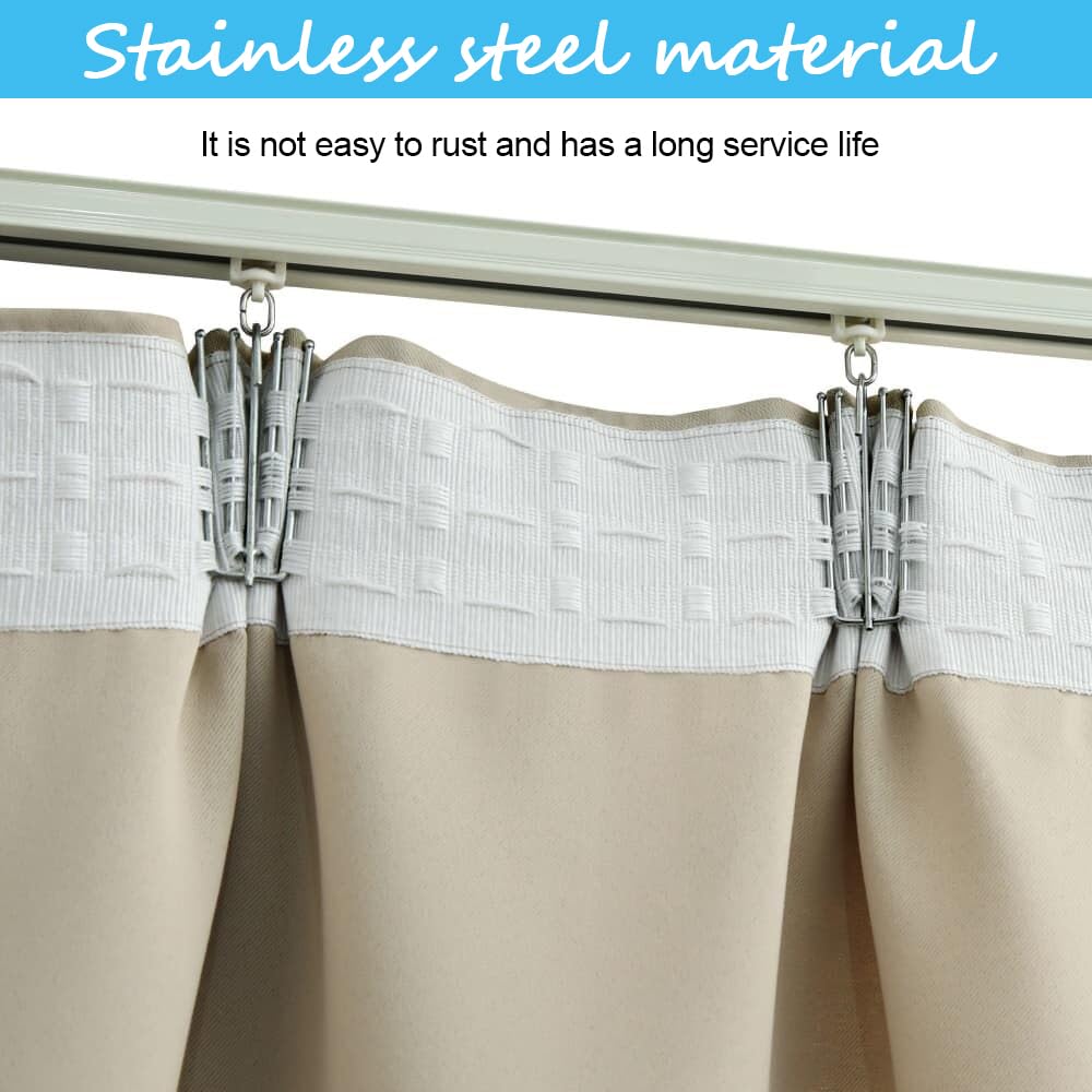 Du willst deine Vorhänge endlich mal richtig schön aufhängen? Mit diesen Edelstahl-Gardinenhaken klappt's bestimmt! Das Set hat 50 robuste Haken - da hast du genug Vorrat und kannst auch mal welche wechseln. Aus rostfreiem Edelstahl gefertigt, halten die deutlich länger als diese billigen Plastikteile. Die 4 Zinken sorgen für gleichmäßige, schöne Falten bei Gardinen mit Kräuselband. So hängt der Stoff nicht einfach nur da, sondern fällt richtig elegant. Das Einhängen ist total einfach und die abgerundeten Kanten schonen sowohl deine Finger als auch den empfindlichen Vorhangstoff. Egal ob du Schienen oder Ringe hast - diese Haken passen zu beiden Systemen. Super praktisch, wenn du verschiedene Gardinen aufhängen willst. Und weil sie aus stabilem Metall sind, halten sie auch schwerere Vorhänge problemlos aus. Noch ein Plus: Sie sind wiederverwendbar! Wenn du mal die Gardinen wechselst, nimmst du einfach die Haken wieder ab und setzt sie neu ein. So einfach kann Vorhang-Aufhängen sein - ohne Ärger und mit perfektem Ergebnis!