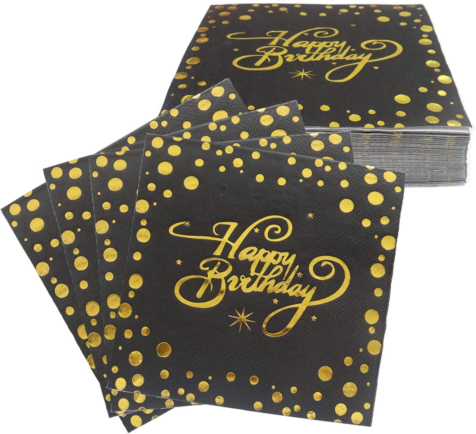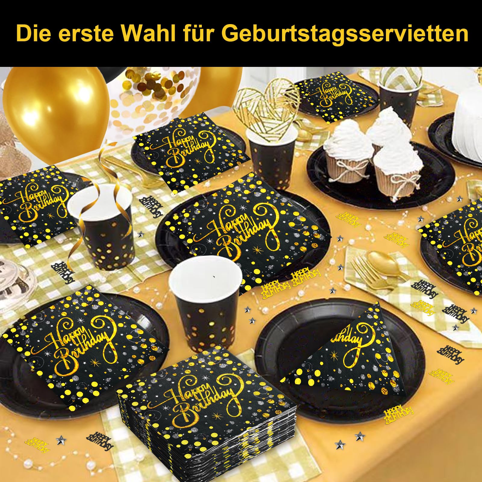 • HENGBIRD 100 Stück Geburtstagsservietten - Schwarz Mit Ballon Motiv 33x33 Cm