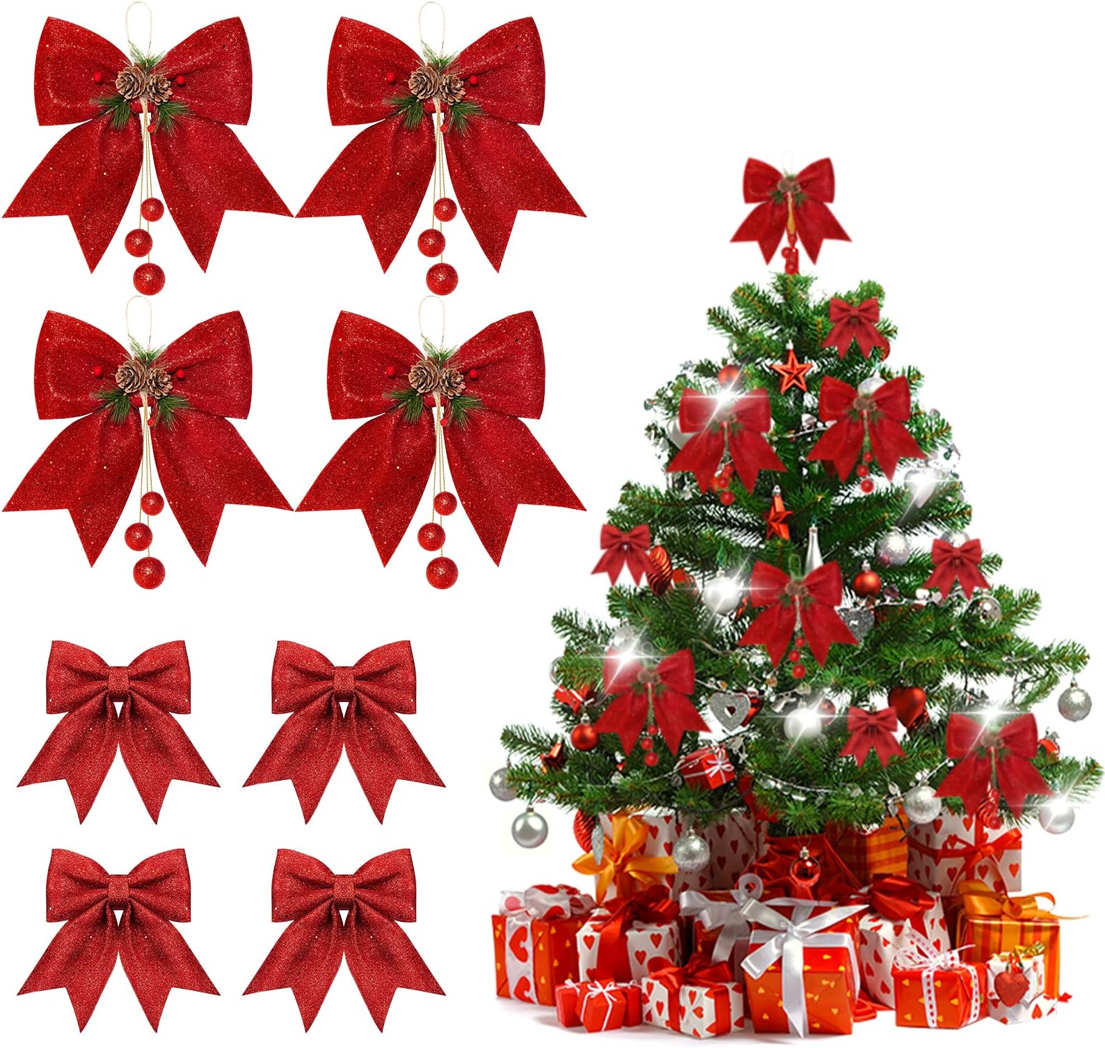• Aurasky Weihnachtsschleifen Rot - 5 Stück Glitzer Schleifen Für Baum & Geschenke