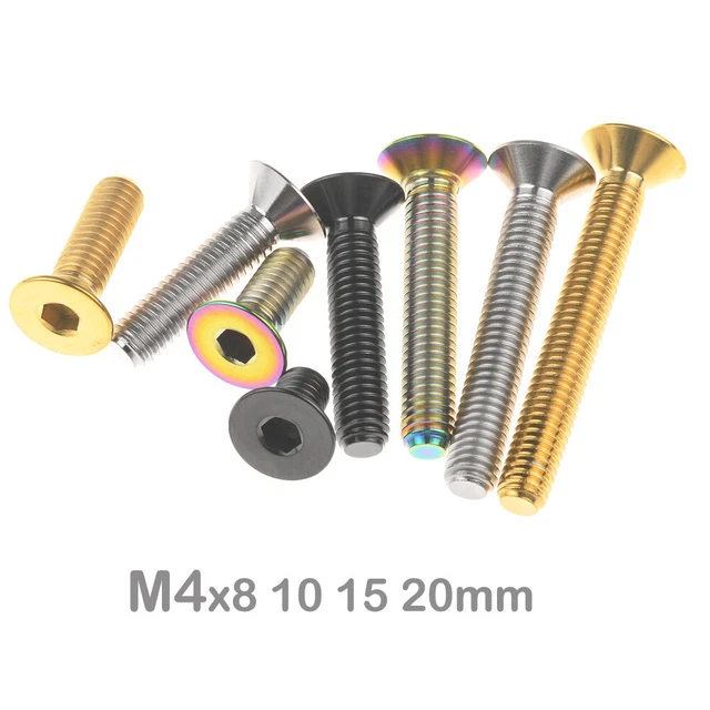 Diese RISON Titan-Schrauben sind ein echter Upgrade für dein Fahrrad! Aus GR5 Titan-Legierung in Flugzeugqualität - super leicht, rostfrei und extrem stabil. Mit M4 Gewinde, 0,7mm Steigung und 15mm Länge perfekt für Vorbauten, Sattelstützen und Lenker. Die goldenen Kegelkopf-Schrauben sehen nicht nur cool aus, sie sind auch 45% leichter als Stahl! Einfach mit 3mm Inbusschlüssel montieren. Das 5er-Set reicht für die wichtigsten Befestigungen an deinem MTB, Rennrad oder Mountainbike. Mach dein Bike leichter und stylischer - ohne Kompromisse bei der Sicherheit!