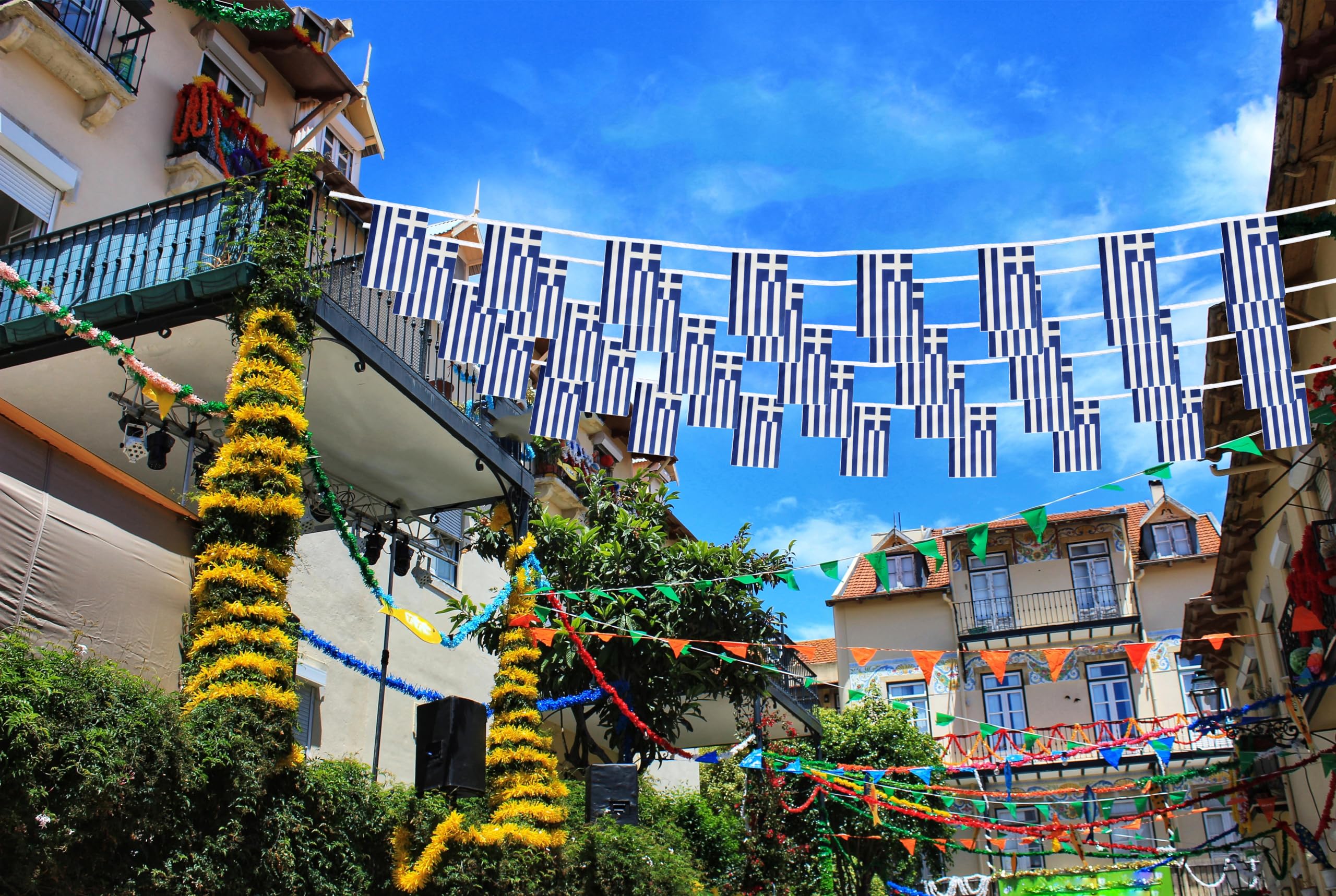 Bring griechisches Flair in dein Zuhause! Diese Wimpelkette mit 40 griechischen Flaggen ist perfekt für Partys, Feiern oder einfach als Deko. Mit stolzen 11,4m Länge - damit kannst du ganze Räume oder Gärten schmücken! Jede Flagge misst 14x21cm - gut sichtbar ohne aufdringlich zu wirken. Aus wasserfestem und langlebigem Material - hält auch mal etwas Wetter aus und kann wiederverwendet werden. Perfekt für griechische Themenpartys, Sportereignisse oder um deine Verbundenheit mit Griechenland zu zeigen. Einfach aufhängen und sofort ist Stimmung im Raum! Auch super für Restaurants, Bars oder Veranstaltungen mit mediterranem Flair. Die blau-weißen Streifen sehen einfach klasse aus und bringen sofort Urlaubsfeeling!