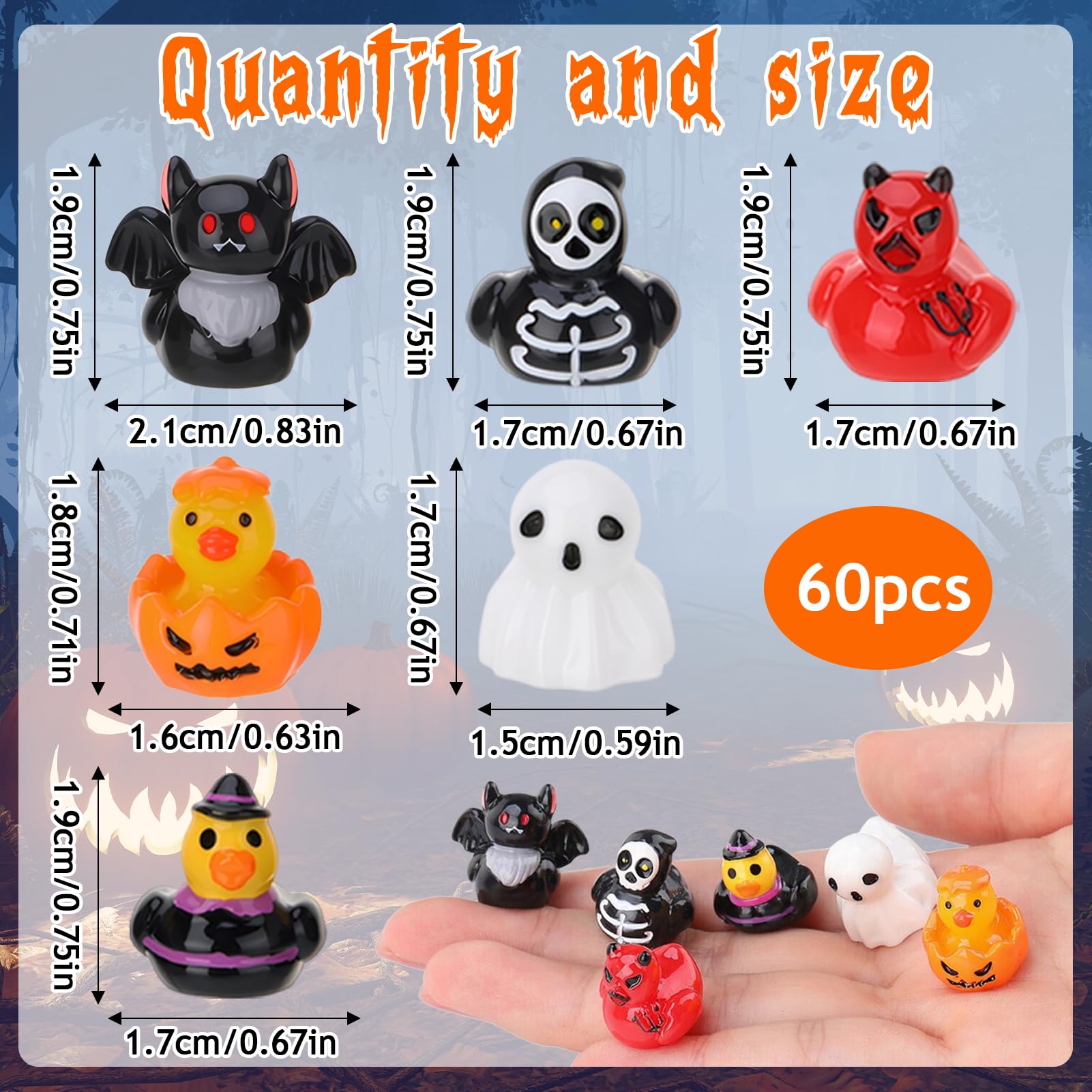Boah, diese Halloween Mini Enten sind ja mega cool! 60 Stück in 6 verschiedenen gruseligen Designs - Zombies, Kürbisse, Fledermäuse, Geister und mehr! Jede Ente aus hochwertigem Harz gefertigt - super detailreich und langlebig. Perfekt für deine Halloween-Deko: Ob als Tischdekoration, für die Fensterbank, im Garten oder als Kuchendeko. Auch toll als Partygeschenk für Gäste oder als Beigabe zur Halloween-Einladung. Die kleinen Enten fördern die Fantasie der Kinder - super als Spielzeug oder für Sensorik-Spiele. Aber Achtung: Nicht für Kinder unter 3 Jahren geeignet! Mit 60 Stück hast du genug für große Dekoprojekte oder zum Verteilen. Bring deine Halloween-Party auf das nächste Level mit diesen niedlich-gruseligen Enten! Einfach aufstellen und die Grusel-Stimmung genießen!