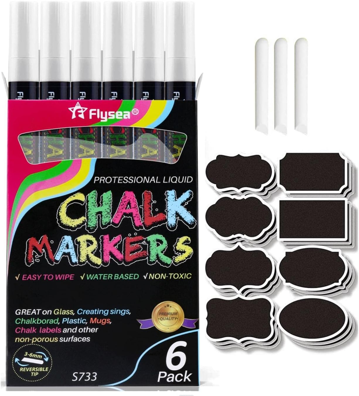 Malen und schreiben war noch nie so einfach! Dieses Set mit 24 Kreidestiften in 12 knalligen Farben ist perfekt für Kinder und Kreative. Die Stifte haben eine feine 1mm-Spitze, damit du super genaue Linien und Details zeichnen kannst. Tinte auf Wasserbasis - kein lästiger Kreidestaub und absolut ungiftig. Einfach mit einem feuchten Tuch abwischbar, ohne Rückstände. Perfekt für Tafeln, Fenster, Glas, Spiegel und andere glatte Oberflächen. Ob fürs Kinderzimmer, Klassenzimmer oder für coole Schaufenster-Deko - hier ist alles möglich. Die Stifte trocknen nicht aus, dank versiegelter Kappen, und kommen in einer praktischen Aufbewahrungsbox. Also, wenn du mal was Anderes als normale Stifte ausprobieren willst, schnapp dir dieses Set. Mach deine Welt bunter und kreativer - bestell jetzt und leg los!