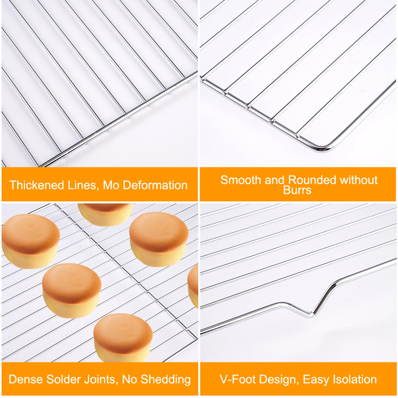 Diese beiden Edelstahl-Gitter sind echte Küchen-Allrounder! Mit 30x20cm Größe und 1,5cm hohen Füßen für perfekte Luftzirkulation. Deine Kekse, Kuchen und Brote kühlen gleichmäßig ab ohne unten feucht zu werden. Aus lebensmittelechtem Edelstahl - rostfrei, geruchlos und absolut sicher. Hält Temperaturen bis 230°C problemlos aus. Die glatte Oberfläche mit Antihaft-Effekt macht das Reinigen zum Kinderspiel, sogar spülmaschinenfest! Ideal zum Backen, Grillen, Räuchern oder als Abtropfgitter. Einfach etwas Öl vor dem ersten Gebrauch und schon brennt nichts an. Platzsparend stapelbar für die Aufbewahrung. Zwei Stück im Set - perfekt für größere Backaktionen oder verschiedene Gerichte gleichzeitig!