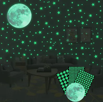 Verwandle dein Zimmer in einen magischen Sternenhimmel! 303 leuchtende Sterne und Monde in Pink, Grün und Blau. Nach Lichtaufladung leuchten sie 4-6 Stunden im Dunkeln.