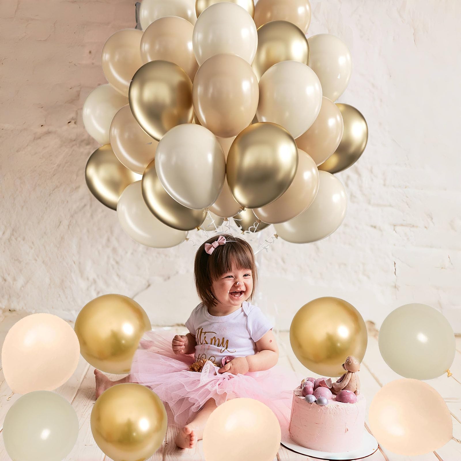 Boah, diese Ballon-Mischung macht jede Party zu etwas Besonderem! 60 Stück in eleganten Beige-, Weiß- und Goldtönen - 30 beige, 10 weiße, 15 champagnergoldene Metallic und 5 goldene Konfetti-Ballons. Aus hochwertigem Latex - kannst du mit Luft oder Helium befüllen. Sieht super aus bei Geburtstagen, Hochzeiten, Babypartys oder jeder anderen Feier. Einfach zu 90% aufblasen - so halten sie am längsten. Die goldenen Bänder sind schon dabei! Aber Achtung: Latexballons haben anfangs einen leichten Geruch - einfach kurz auslüften lassen. Nicht in direkter Sonne lagern und vorsichtig sein mit scharfen Gegenständen. Einfach aufblasen und deine Party ist sofort festlich geschmückt!