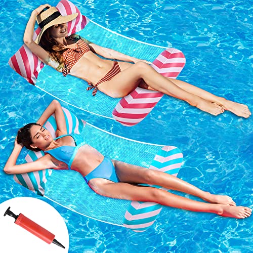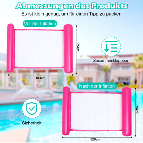 Endlich mal was Cooles für den Pool! Diese Wasser-Hängematten von Sitbfoam sind der absolute Hit für den Sommer. Das 2er-Set kommt mit praktischer Pumpe - alles was du brauchst also! Aufgeblasen messen sie 120x65 cm und sind super leicht zu transportieren. Das geniale 4-in-1 Design: Du kannst sie als Hängematte, Liege, Sportsattel oder Strandmatte nutzen - total vielseitig also! Das halb untergetauchte Design gibt optimalen Halt im Wasser und stützt Nacken und Füße perfekt. Bis 113 kg belastbar, also auch für Erwachsene super geeignet. Aus 50% Vinyl und 50% weichem Netz gefertigt, sind sie luftdicht verschweißt und super sicher. Das Netz an der Unterseite sorgt für mehr Wasserkontakt - viel erfrischender als diese komplett luftdichten Teile! Einfach aufblasen, ins Wasser legen und entspannen. Nach dem Gebrauch schnell entleeren und trocknen - passt in jede Tasche. Perfekt für Pool-Partys, Strandtage oder den See. Aber Achtung: Kinder sollten nur unter Aufsicht damit planschen. Einfach das perfekte Sommer-Spaß-Equipment!