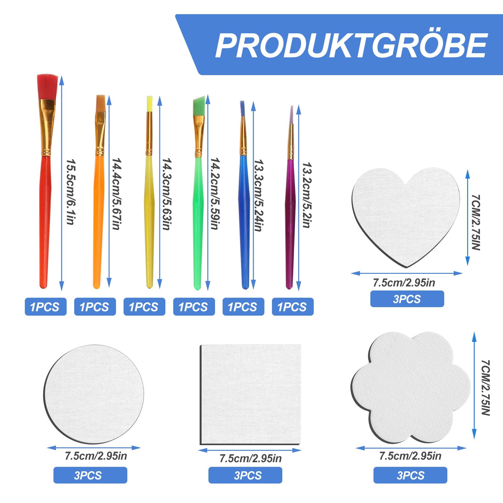 Kreativität für Groß und Klein! Dieses umfangreiche Set mit 12 magnetischen Leinwänden in 4 verschiedenen Formen (Quadrat, Herz, Kreis, Sechseck) bringt Farbe in dein Zuhause. Mit den praktischen Maßen von 7,5x7,5cm sind die Leinwände ideal für kleine Kunstwerke. Das Besondere: Jede Leinwand hat einen Magnetrücken - nach dem Bemalen einfach an den Kühlschrank, Whiteboard oder andere Metallflächen hängen! Inklusive 6 hochwertiger Pinsel für verschiedene Maltechniken. Perfekt für Acrylfarben, Ölfarbe oder Gouache. Die Leinwände aus 240g Papier mit Magnetschicht sind leicht und stabil zugleich. Toll für Kindergeburtstage, Kunstprojekte oder einfach zur Entspannung. Erstelle deine persönliche Galerie und verwandle deinen Kühlschrank in ein Kunstwerk!