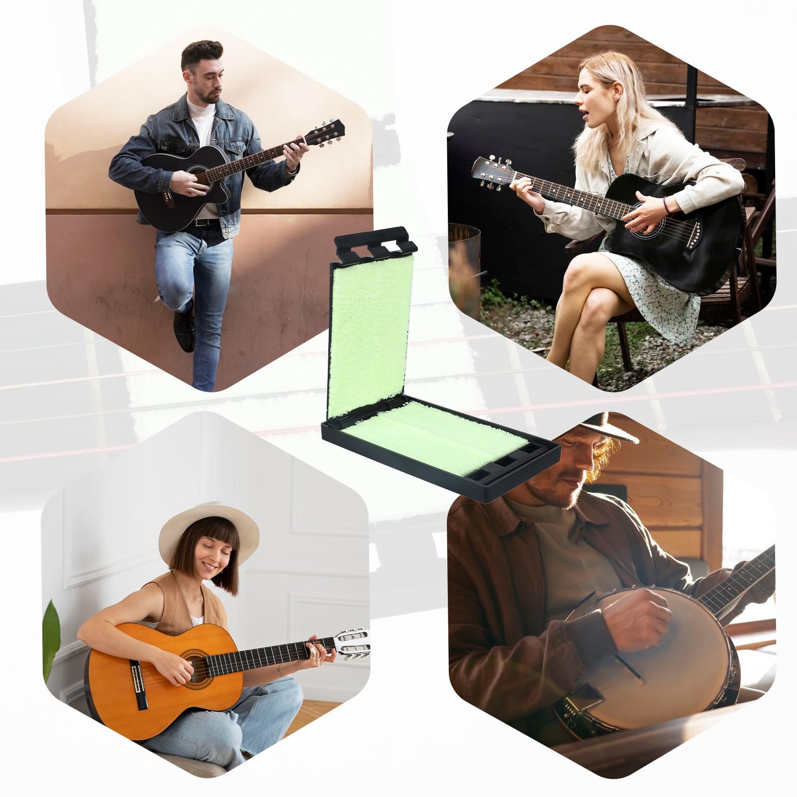 Hey Musiker! Deine Gitarrensaiten sehen mal wieder aus wie nach einem Rockkonzert? Dieses praktische Reinigungsset mit 3 Mikrofaser-Reinigern macht Schluss mit Staub und Schmutz! Einfach zwischen die Saiten schieben, hin und her ziehen - und schon glänzen die Saiten wie neu! Die grünen Reiniger sind super weich, kratzen nicht und sind wiederverwendbar. Einfach mit Wasser ausspülen und sie sind wieder einsatzbereit. Perfekt für E-Gitarren, Akustikgitarren, Bass, Ukulele - eigentlich für alle Saiteninstrumente! Mit dem ergonomischen Griff liegt das Teil super in der Hand und deine Finger bleiben geschont. Nimm einen für die Bandprobe, einen für zu Hause und einen als Reserve - mit 3 Stück bist du immer bestens ausgestattet. Ob Profi oder Hobby-Musiker, dieses Set ist ein Must-have für jede Instrumententasche!