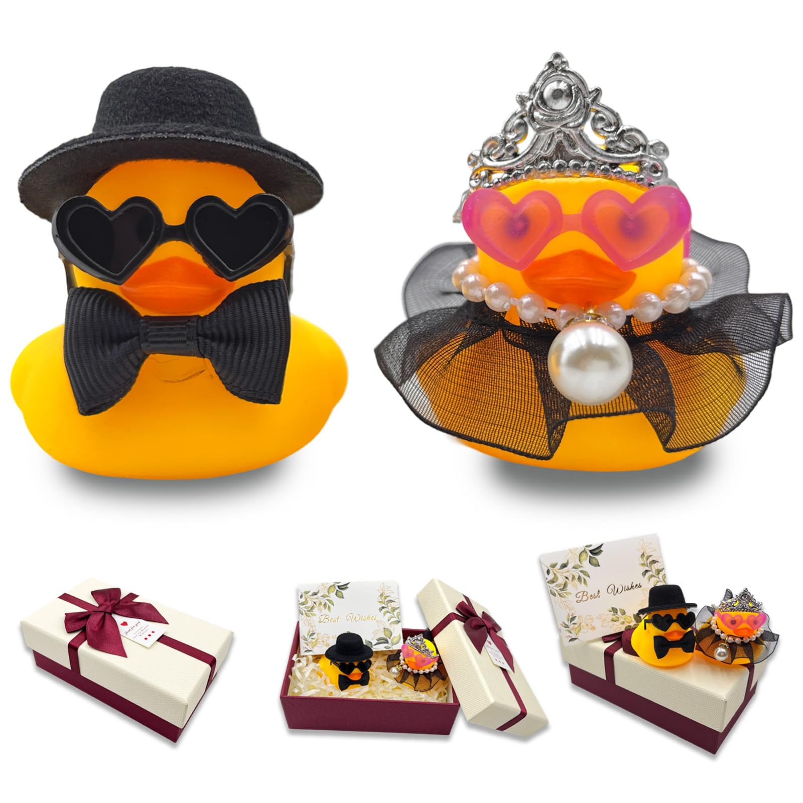 LAOYEFACAI Quietscheente Hochzeitspaar 2 Stück - Mit Hut & Sonnenbrille | Badezeug Auto Deko