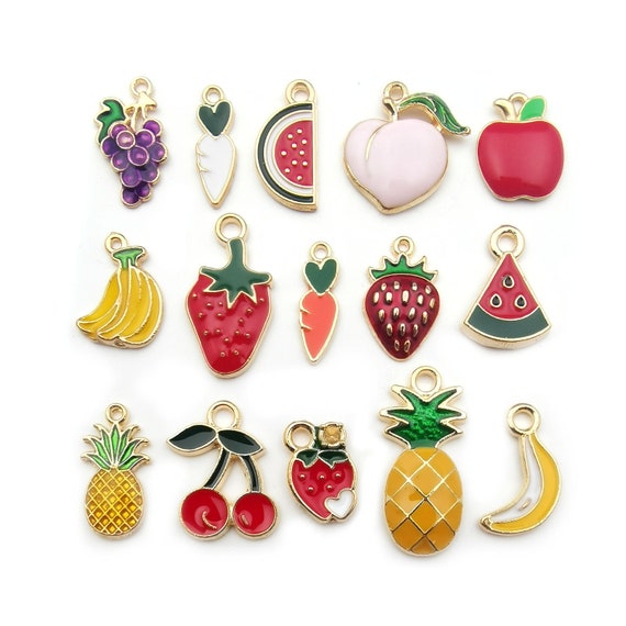 Bist du begeisterte Bastlerin und liebst süßen Schmuck? Dann wirst du diese 44 Obst Charms aus Metall total lieben! Im Set sind 22 verschiedene Frucht-Designs enthalten - von Erdbeeren über Zitronen bis zu Bananen und Wassermelonen. Jedes Design gibt's sogar doppelt, also kannst du richtig kreativ werden. Die Anhänger sind aus hochwertiger Legierung gefertigt und super robust. Durch den Emaille-Färbungsprozess leuchten die Farben richtig schön und verblassen nicht so schnell. Jeder Charm hat einen kleinen Ring (ca. 1,5mm Durchmesser), an dem du ganz easy Ketten oder Perlendraht befestigen kannst. Egal ob du Armbänder, Halsketten, Ohrringe oder sogar Schlüsselanhänger basteln willst - mit diesen süßen Frucht-Motiven machst du was ganz Besonderes draus. Perfekt für den täglichen Gebrauch oder als besonderes Highlight bei besonderen Anlässen. Deiner Kreativität sind wirklich keine Grenzen gesetzt!