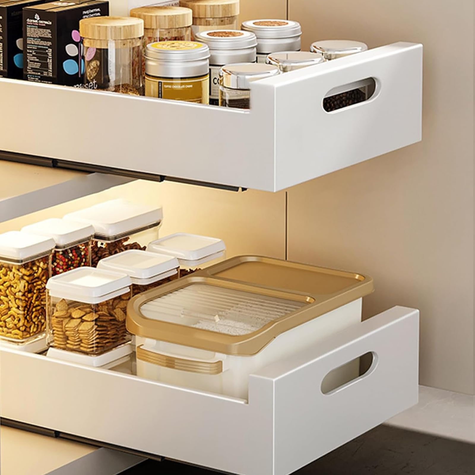 Nie wieder in dunklen Schränken kramen! Die Armanyya Ausziehschubladen bringen Licht ins Dunkel. Einfach mit Nano-Kleber befestigen - null Bohren, null Dreck. Jede Schublade trägt satte 25kg, da kannst du Getränke, Töpfe oder Putzmittel reinstellen. Der Carbonstahl-Rahmen ist mega stabil und die Holz-Griffe liegen gut in der Hand. Besonders clever: Die durchbrochenen Seitenwände - da kommt Luft ran und du siehst sofort, was wo liegt. Kein Schimmel, keine muffigen Überraschungen! Maße: 40-60cm breit, 30cm tief, 17cm hoch - passt in die meisten Standard-Schränke. Die Schienen laufen super leise und schließen sanft, selbst wenn's voll ist. Perfekt für Küche, Bad, Wohnzimmer oder sogar im Büro. Installation in 5 Minuten: Schrank ausmessen, Kleber auftragen, Schublade anbringen, warten - fertig! Auch super für Mieter, weil rückstandslos entfernbar. Schwarz passt zu jedem Einrichtungsstil und die Einbrennlackierung kratzt nicht so schnell ab. Endlich Ordnung in diesen blinden Ecken, die man sonst nie genutzt hat. Deine Gewürze, Snacks oder Geschirr sind jetzt immer griffbereit. Einfach mal ausprobieren - du wirst dich fragen, wie du ohne gelebt hast!