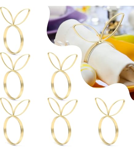 • 6 Stück Osterhasen Serviettenringe Golden - Niedlich Für Tischdeko