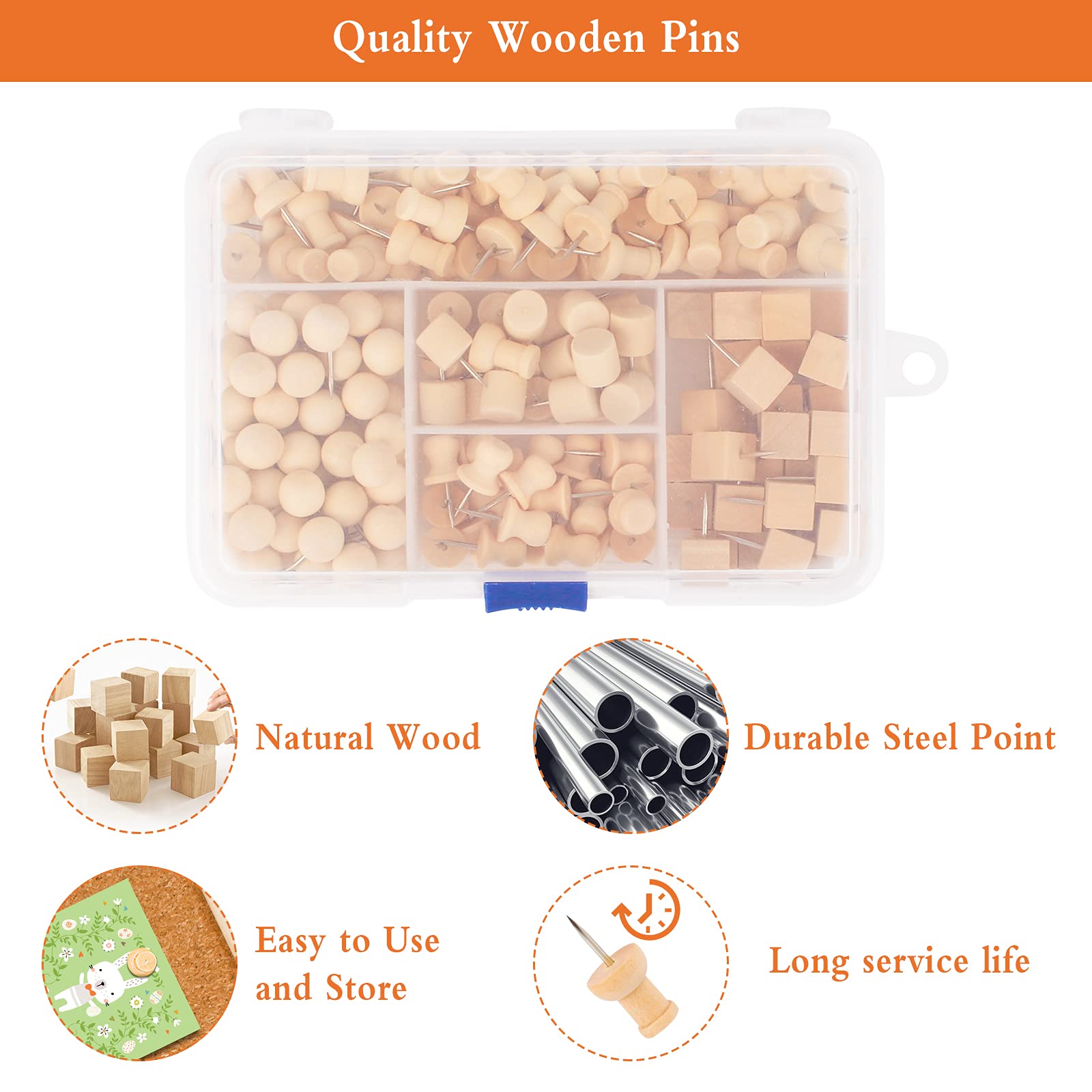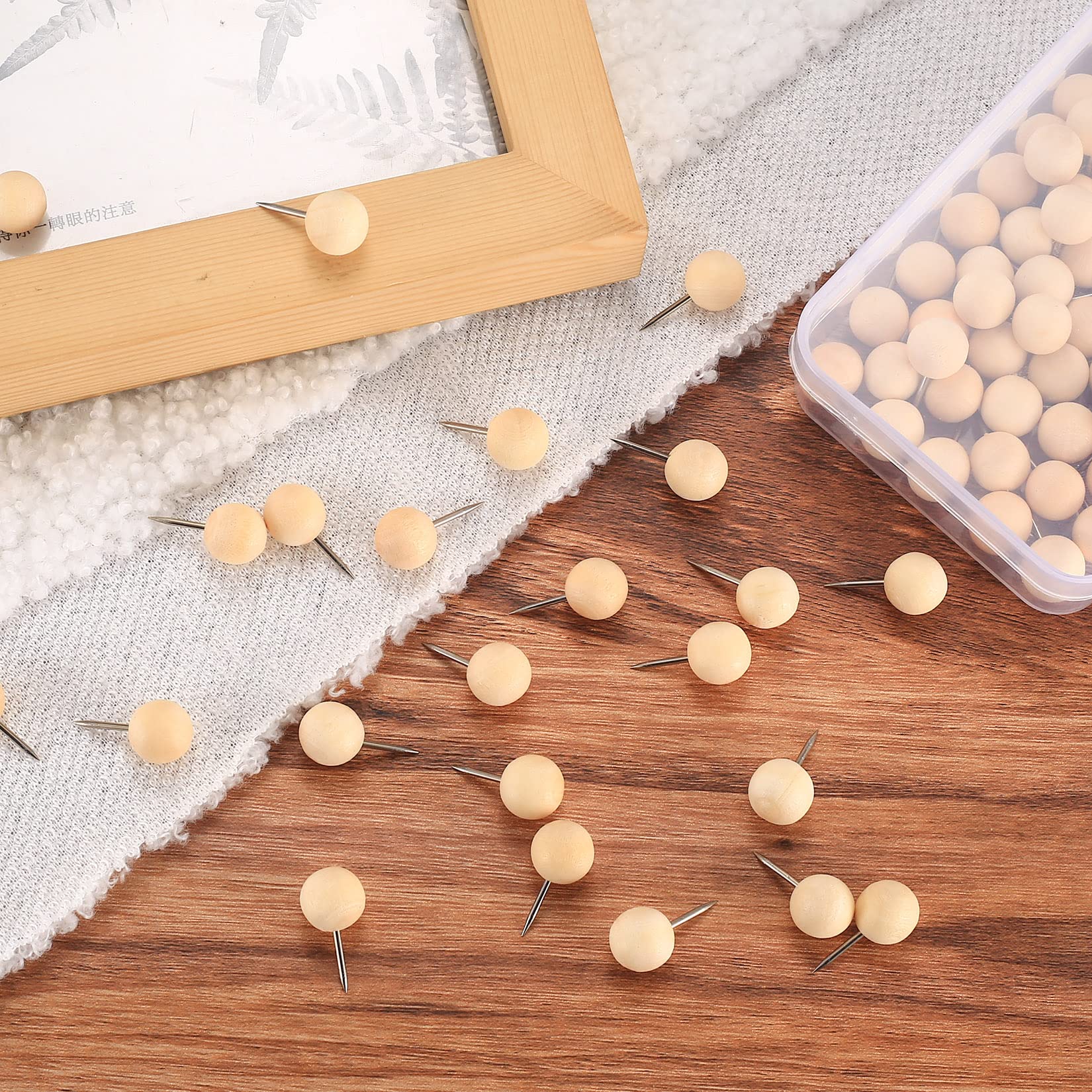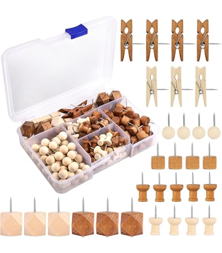 Mit diesen hübschen Holznadeln macht das Organisieren richtig Spaß! Das Set mit 60 Pinnadeln aus natürlichem Kiefernholz ist perfekt für deine Pinnwand, Korktafel oder für Bastelprojekte. Die braunen Holz-Köpfe liegen super angenehm in der Hand und rutschen nicht, während die scharfen Edelstahlspitzen leicht in jede Oberfläche eindringen. Jede Nadel ist etwa 1x1,5cm groß - also genau die richtige Größe, um Fotos, Notizen, Rechnungen oder Landkarten sicher zu befestigen. Die praktische Aufbewahrungsbox hält alle Nadeln ordentlich zusammen und passt sogar in die Handtasche. Super für unterwegs, fürs Homeoffice oder fürs Klassenzimmer! Das Schöne: Die Holzmaserung sieht nicht nur natürlich und schick aus, sondern die Nadeln sind auch umweltfreundlich. Nach dem Herausziehen bleiben kaum sichtbare Löcher zurück und die Nadeln halten auch nach mehrmaligem Gebrauch noch bombenfest. Perfekt für alle, die ihre Pinnwand lieben oder gerne basteln - ob für die Reiseplanung, als Erinnerungswand oder für kreative Projekte. Einfach reinstecken, befestigen und sich an der Ordnung erfreuen!