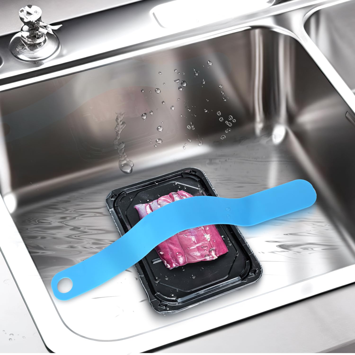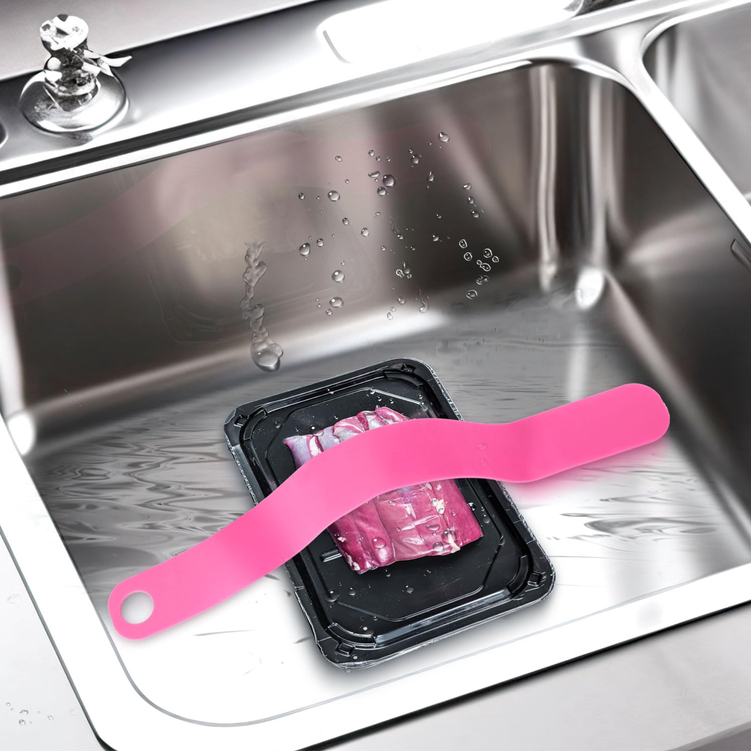 Nie wieder schwimmende Fleischpackungen im Spülbecken! Diese praktischen Silikon-Auftaubänder in Blau und Rosa lösen das Problem endlich. Einfach um die Tiefkühlpackung legen, die starken Saugnäpfe ans Becken drücken und schon bleibt alles an Ort und Stelle. Das BPA-freie Silikon ist absolut lebensmittelecht und kann bedenkenlos verwendet werden. Perfekt für Fleisch, Hähnchen, Fisch, Speck oder auch Gemüse - einfach alles, was aus der Tiefkühltruhe kommt. Die universelle Größe von 45x5 cm passt in praktisch jedes Spülbecken. So taut alles gleichmäßig und hygienisch auf, ohne dass du ständig nachsehen musst. Spülmaschinenfest und leicht zu reinigen. Einfach abspülen und für den nächsten Einsatz bereit. Mit zwei Bändern in verschiedenen Farben kannst du sogar mehrere Packungen gleichzeitig auftauen. Ein kleines Küchenhelferlein, das dir echt das Leben erleichtert. Einfach praktisch!