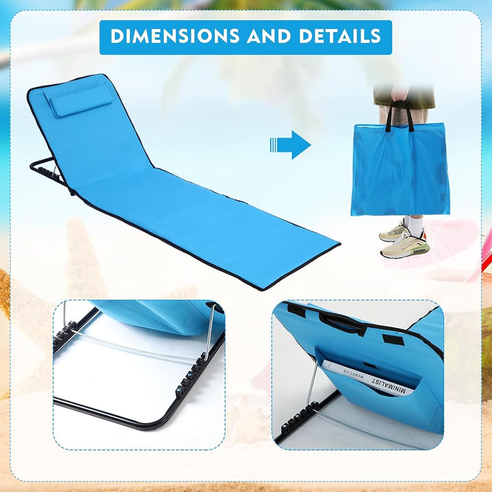 Das coole Teil: Die Rückenlehne hat 5 verstellbare Winkel. Ob du sitzen, halbliegen oder komplett flach liegen willst - hier findest du deine perfekte Position. So kannst du richtig entspannen und die Sonne genießen.