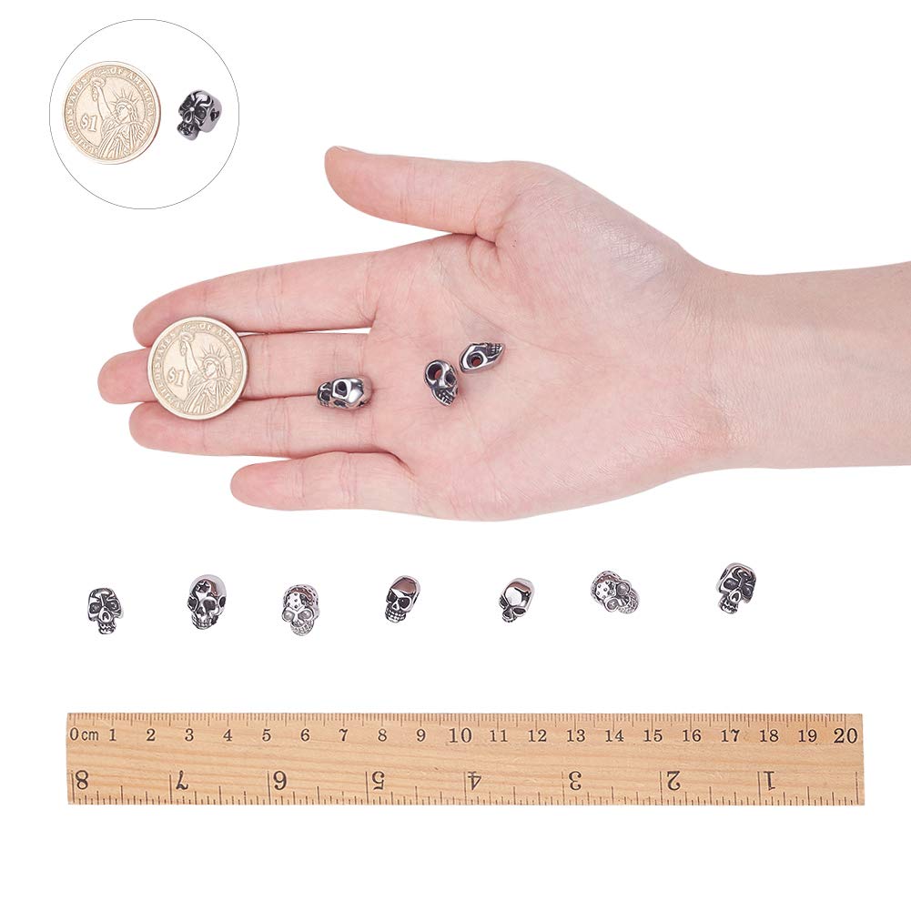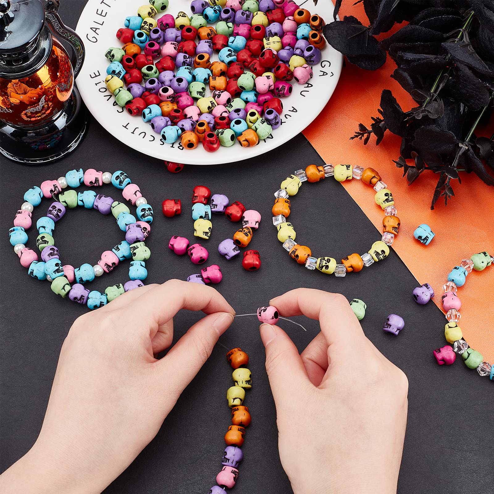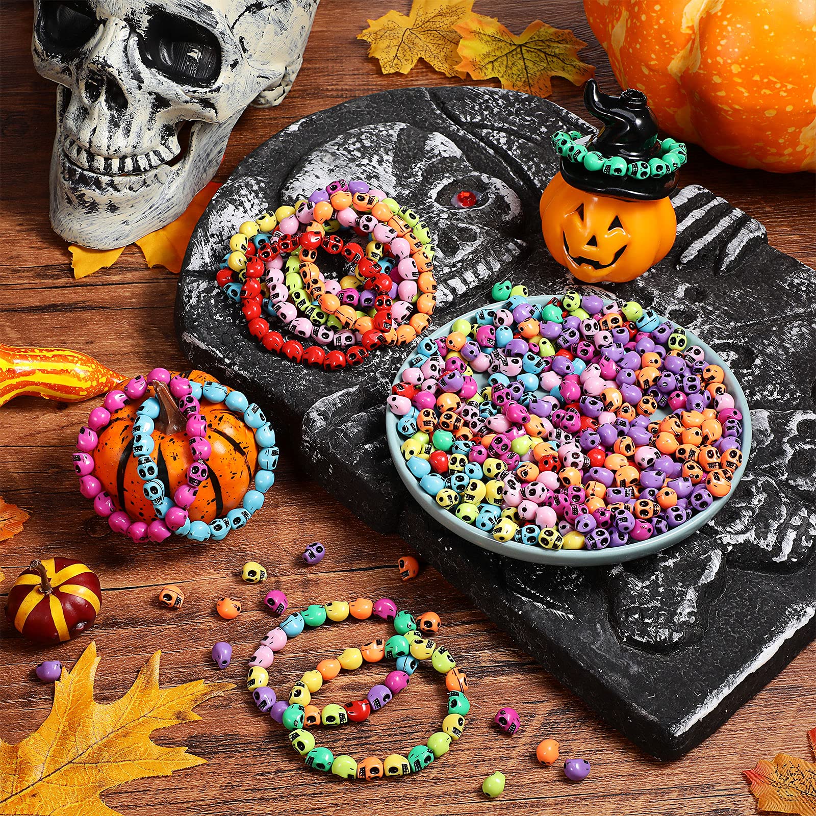 Halloween-Fans aufgepasst! Mit diesen 300 Totenkopf-Perlen wird's gruselig-schön. In schwarz mit bunten Akzenten sind sie perfekt für deine Halloween-Basteleien. Ob Armbänder, Halsketten oder Deko - deiner Kreativität sind keine Grenzen gesetzt. Die Perlen haben etwa 9,5x7,5x8mm Größe und sind aus robustem Acryl. Sie verblassen nicht und reißen nicht so schnell. Mit 1,8mm Bohrung lassen sie sich super auf Bänder auffädeln. Ideal für Schmuckherstellung, Schlüsselanhänger oder gruselige Dekorationen. Das große Set reicht für mehrere Projekte - so kannst du auch deine Freunde mit coolem Halloween-Schmuck überraschen!