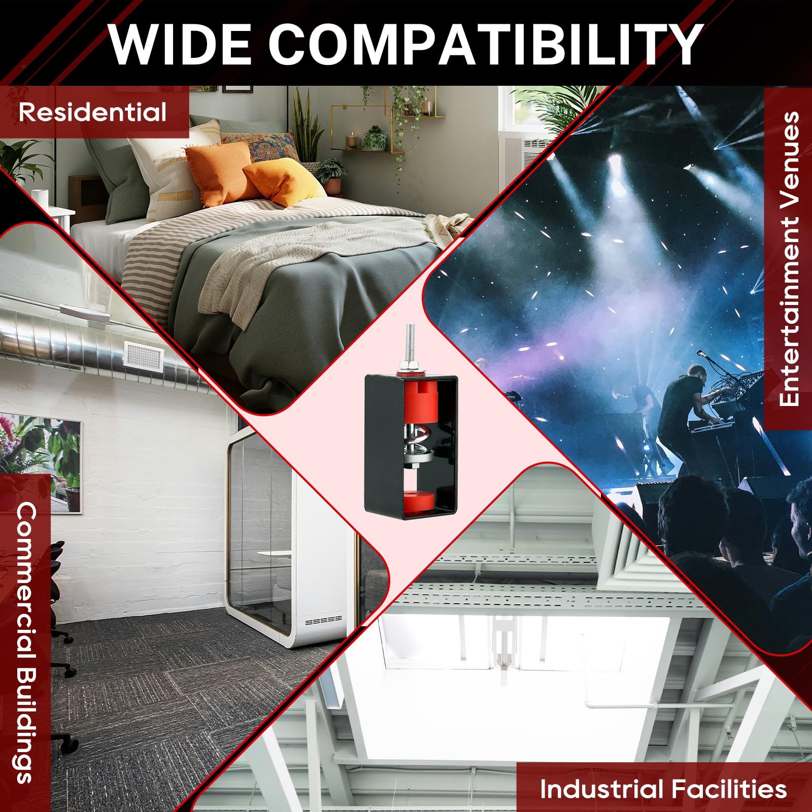 Schluss mit störenden Vibrationen! Diese 4 Feder-Isolatoren sorgen für Ruhe in deinen vier Wänden. Hergestellt aus 3mm Stahl mit hochwertigen Federn und Silikon - extrem langlebig und effektiv. Jeder Isolator trägt bis zu 50kg und hat eine Ablenkung von 3cm. Maße: 10,2x4,6x5,1cm mit M8 Gewinde. Perfekt für Klimaanlagen, aber auch für Heimkino, Studio oder Hotelzimmer. Einfache Montage an Decken, Wänden oder Böden - keine Spezialwerkzeuge nötig. Reduziert Lärm und Vibrationen spürbar. Schafft eine angenehme, ruhige Atmosphäre. Ob im Schlafzimmer oder Wohnzimmer - mit diesen Isolatoren genießt du endlich deine Ruhe!