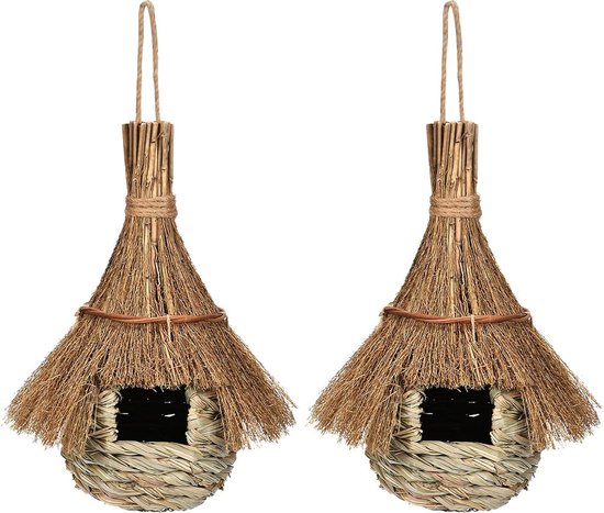 Wie süß ist denn das? Diese beiden handgewebten Vogelnester aus natürlichem Heu sind der perfekte Rückzugsort für deine gefiederten Freunde! Mit den Maßen 11,5 x 11,5 x 22 cm bieten sie genug Platz für Wellensittiche, Meisen, Kanarienvögel und andere kleine Vögel. Das natürliche Heu-Material ist trocken, schimmelbeständig und umweltfreundlich. Der Eingang misst etwa 3,5 x 4,5 cm - groß genug für die Vögel, aber klein genug für Schutz. Mit den praktischen Aufhängebändern kannst du die Nester einfach an Ästen, Volieren oder Zäunen befestigen. Perfekt als geschützter Schlafplatz, zum Brüten oder einfach als gemütlicher Rückzugsort. Das raue Äußere gibt den Vögeln besseren Halt. Ob im Garten, auf dem Balkon oder in der Voliere - deine Vögel werden sich über dieses natürliche Zuhause freuen! Einfach aufhängen und den Vögeln beim Einzug zusehen.