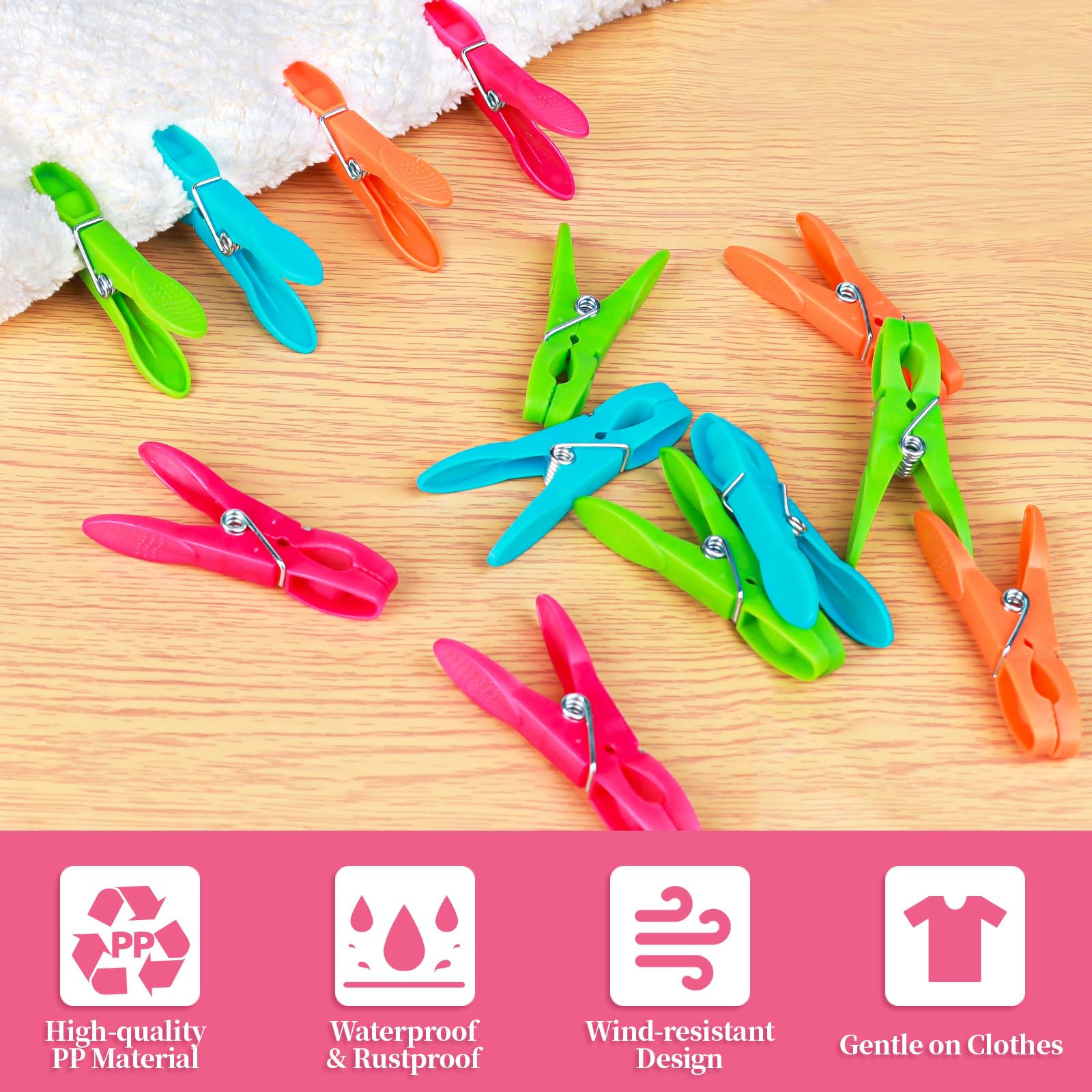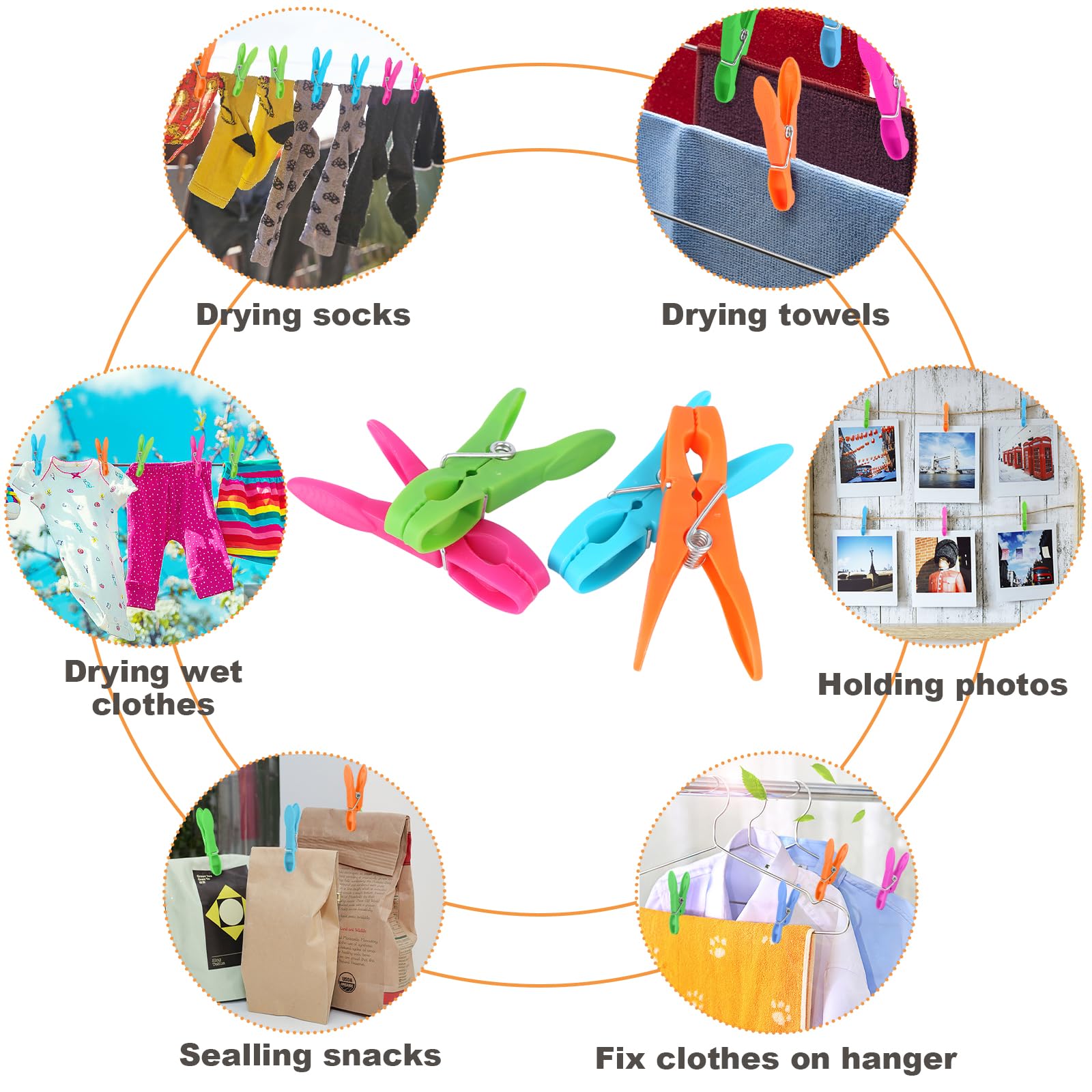 Endlich ordentliche Wäscheklammern! Dieses 60er-Set mit praktischem Aufbewahrungskorb macht das Wäscheaufhängen zum Vergnügen. Bunt, praktisch und super haltbar.\n\nSet-Inhalt:\n• 60 Wäscheklammern\n• 4 Farben: Blau, Rot, Grün, Orange\n• Jeweils 15 Stück pro Farbe\n• 1 Aufbewahrungskorb\n• Größe: 7,3 x 1,4 x 3 cm\n\nMaterial und Qualität:\n• Aus Polypropylen und Edelstahl\n• Rostfrei - hält ewig\n• Hinterlässt keine Abdrücke auf Kleidung\n• Rutschfeste Zähne\n• Hochfeste Federn\n• Leicht zu öffnen und schließen\n\nBesondere Features:\n• Windfest - hält auch bei Sturm\n• Für innen und außen geeignet\n• Praktischer Aufbewahrungskorb\n• Übersichtliche Ordnung\n• Wiederverwendbar\n\nVielseitige Anwendung:\n• Wäsche aufhängen\n• Snackbeutel verschließen\n• Fotos befestigen\n• Moskitonetze spannen\n• Dokumente zusammenhalten\n\nNie wieder verlorene Klammern! Mit dem Korb hast du immer alles griffbereit und ordentlich.
