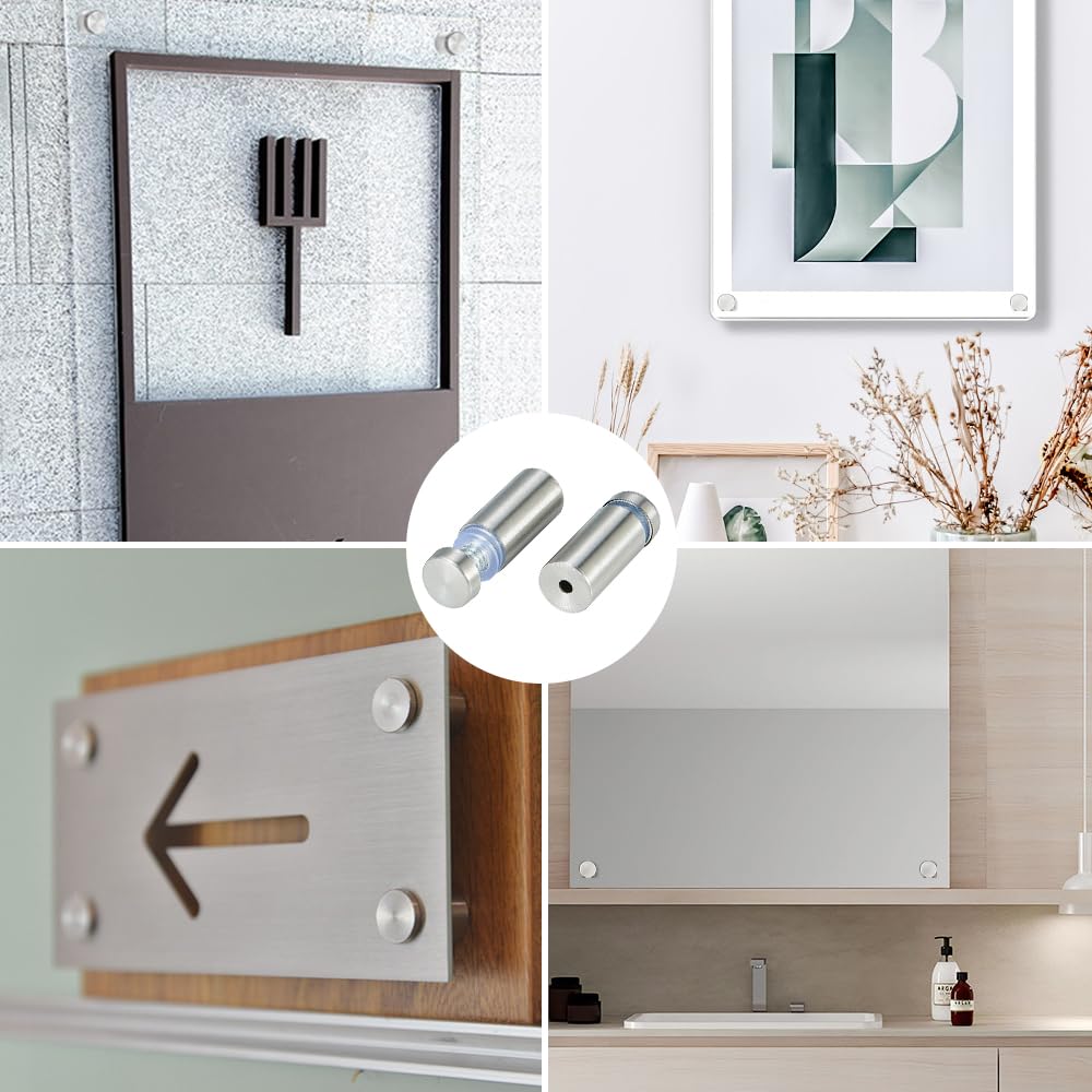 Perfekte Halterungen für Schilder, Glas und Kunstwerke! 40 Stück Edelstahl-Abstandshalter in Silber - rostfrei und langlebig. Maße: 12x20mm, Gewindedurchmesser 7mm, Loch 5mm. Damit montierst du Schilder professionell mit Abstand zur Wand - sieht super aus und kein Rahmen nötig. Einfach zu installieren: Loch bohren, Dübel setzen, Halterung festschrauben. Inklusive Schrauben, Dübeln und transparenten Gummi-Abstandshaltern zum Schutz. Für innen und außen geeignet - super für Büros, Geschäfte, Ausstellungen. Damit werden deine Schilder und Glasbilder zum echten Hingucker. Einfach bestellen und professionell montieren!