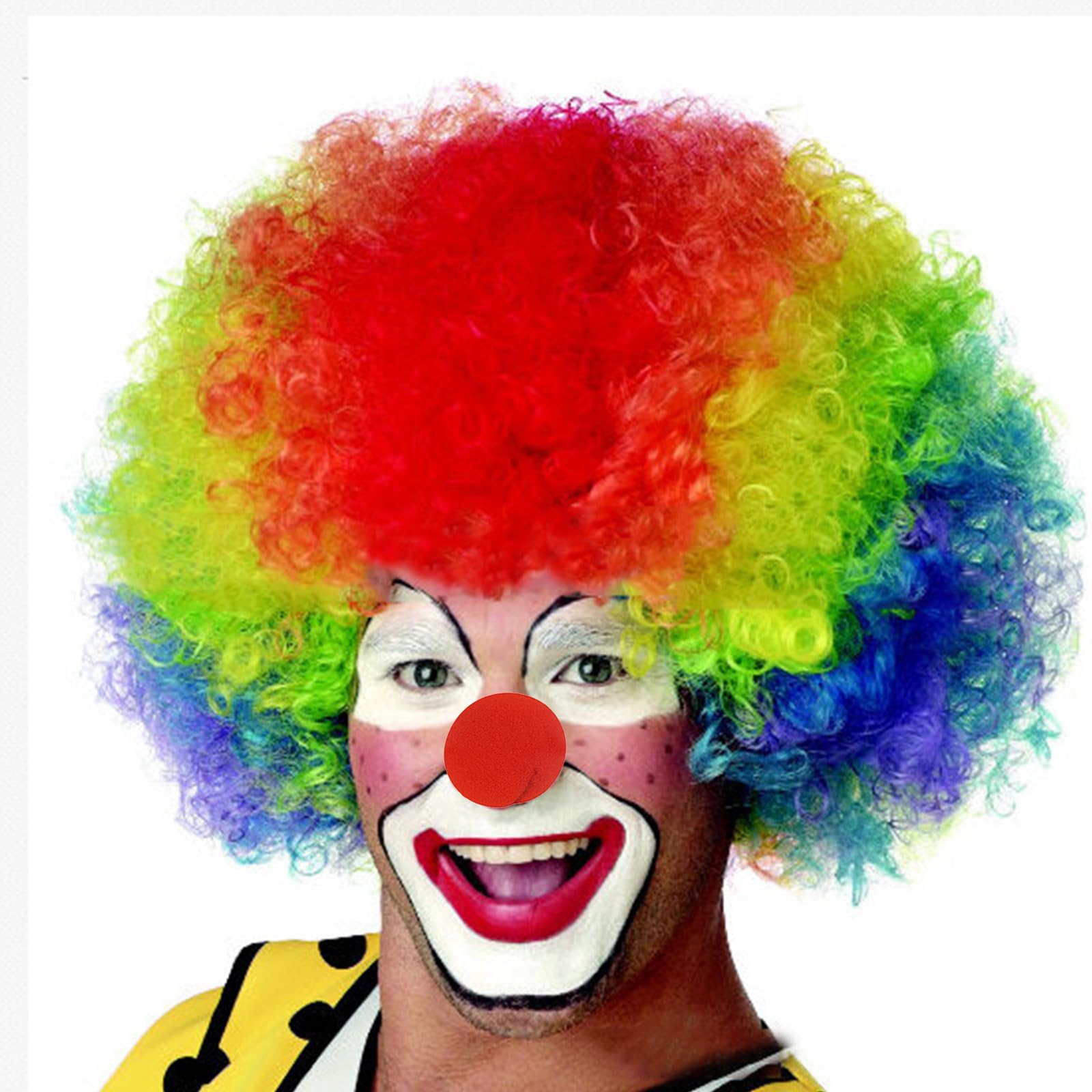 Boah, diese Regenbogen-Clownperücke ist ja der absolute Hammer für Karneval und Fasching! Die bunten Locken in allen Regenbogenfarben sehen einfach mega lustig aus und machen sofort gute Laune. Super weiches Material - du kannst sie stundenlang tragen ohne dass es kratzt oder drückt. Ob für Kinder oder Erwachsene, männlich oder weiblich - die Perücke ist unisex und passt für jeden. Die Locken sind richtig voluminös und sehen total natürlich aus, genau wie bei einem echten Clown. Perfekt um dein Clown-Kostüm komplett zu machen oder auch einfach so als witziger Eyecatcher. Auf jeder Party wirst du damit zum Mittelpunkt! Einfach aufsetzen und losfeiern - garantiert unvergessliche Momente und jede Menge Lacher!