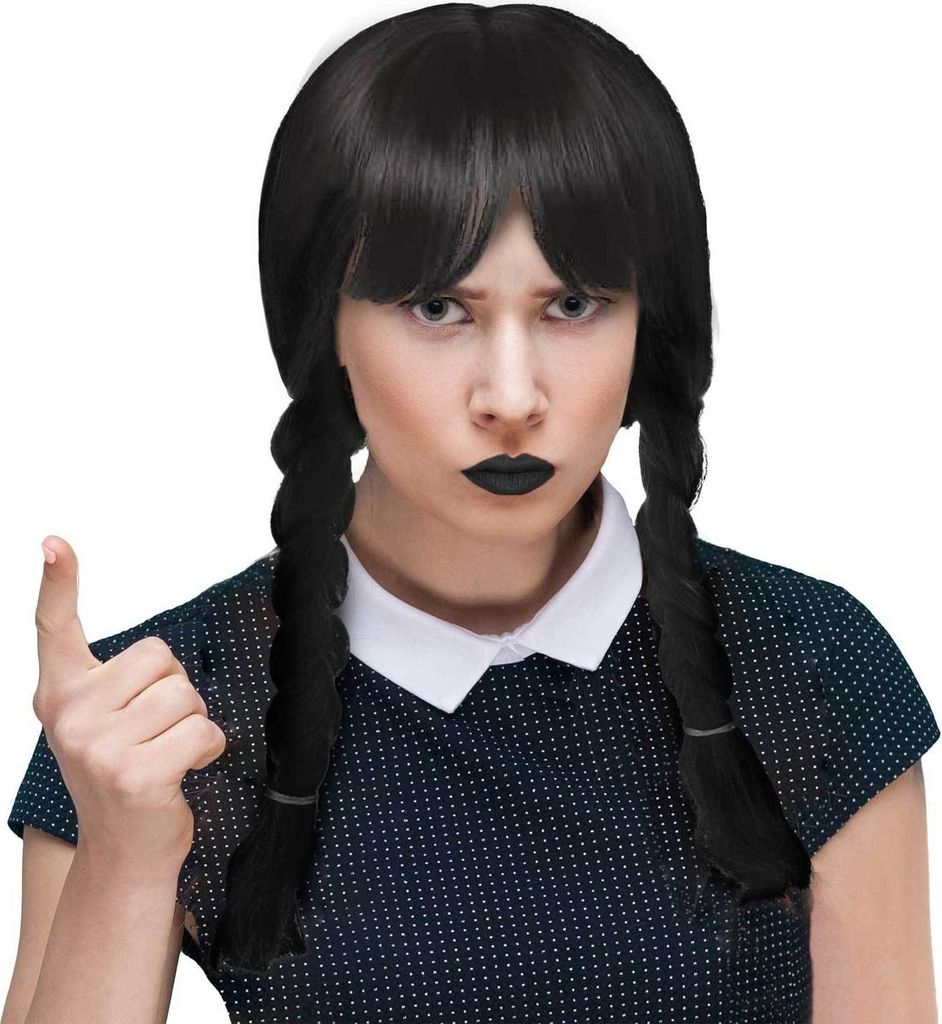 Wednesday Perücke Mit Hand - Cosplay Kostüm Für Halloween & Fasching